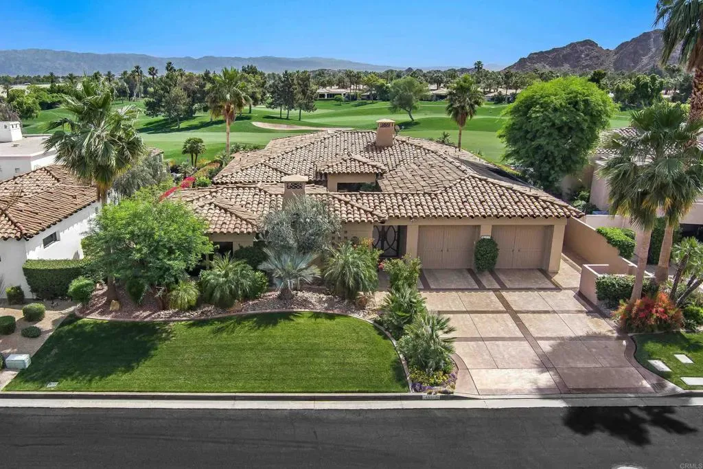 Stunning golf course home in the exclusive Villaggio enclave at Indian Wells Country Club. Ideally situated on the 2nd hole of the Cove Course, this east-facing residence offers sweeping (3) fairway and Mountain views. Former Ministrelli model, featuring 4 generous-sized en-suite bedrooms including a detached casita with separate bedroom and living room. Gated courtyard entry creates a private, welcoming approach. Interior highlights include soaring ceilings, walls of glass capturing expansive views, and an open-concept great room combining the kitchen, breakfast nook, and family room. Chef’s kitchen offers newer stainless steel appliances, abundant cabinetry, and is fully equipped for turnkey living. Large-format polished travertine flooring, custom built-ins, faux finishes, and designer window coverings throughout. Primary suite features a fireplace and overlooks the pool, spa, and golf course. All secondary bedrooms are generously sized with ensuite baths and walk-in closets. Dual fireplaces in both the great room and primary suite. Outdoor living includes a private pool and spa with golf course and mountain views. 2-car garage plus golf cart garage. Offered fully furnished with designer furnishings, artwork, linens, cookware, and dishware in both the main house and casita. Located behind the gates of Indian Wells Country Club with optional golf or social membership. Indian Wells residents enjoy added benefits including BNP Paribas Open ticket access (one session), dining and retail discounts, and a variety of community events. Ideal for full-time, seasonal, or investment living—this is desert lifestyle at its finest. **FULL SET OF PHOTOS TO BE ADDED 4/12