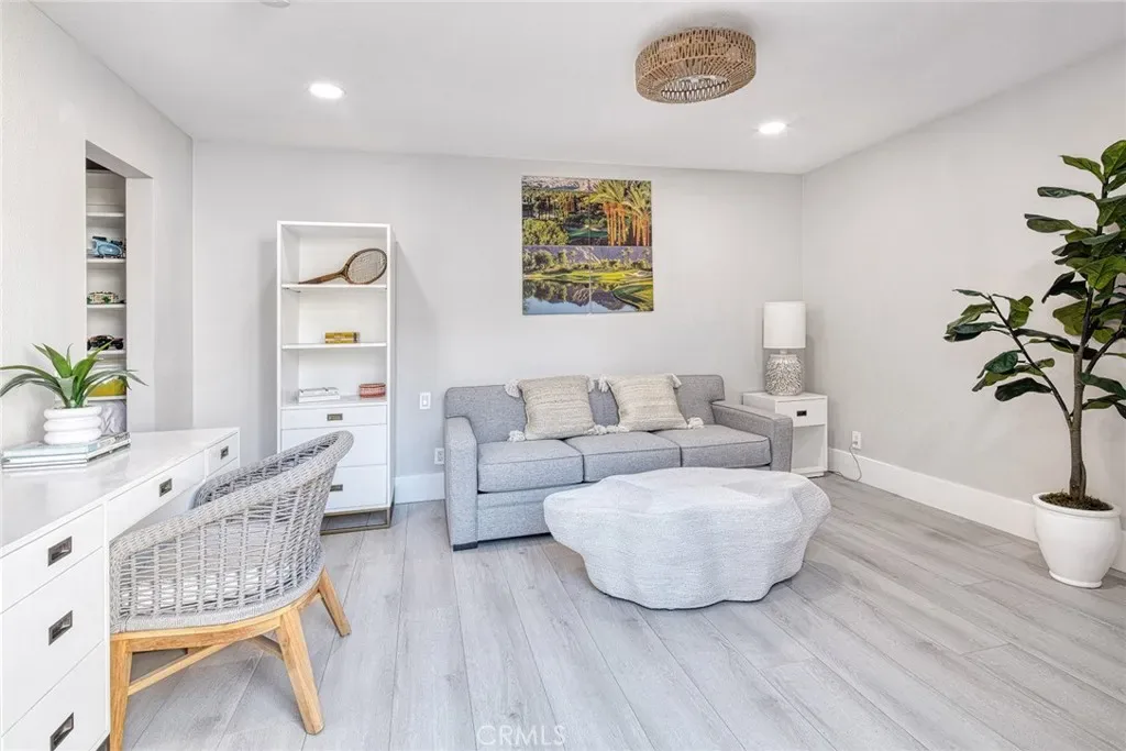 Thoughtfully remodeled and refreshed, the home showcases new plank flooring, new baseboards, new interior doors, new designer lighting, new quartz countertops, and fresh interior paint. Additional upgrades include a new water heater, updated kitchen, custom sliding door at the den, new fireplace, closet organizers, and custom window coverings in all bedrooms. A Tesla EV charger and EVOLUTION 4 SEATER GOLF CART INCLUDED!!