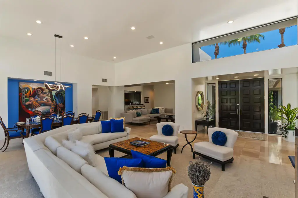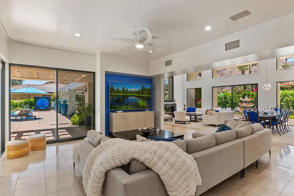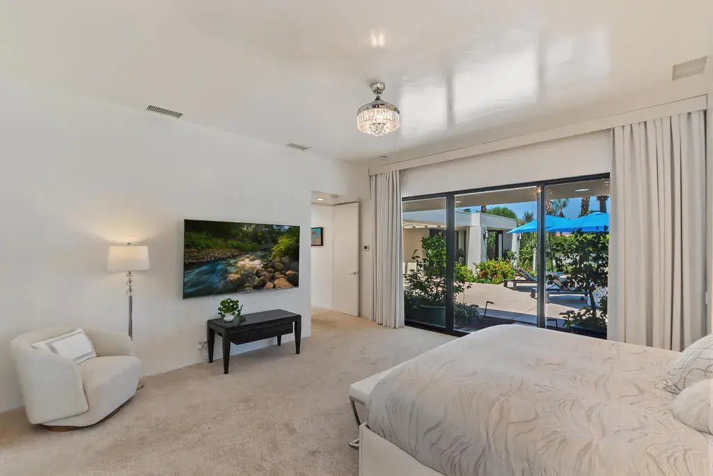 Beyond the 24 hour manned security station, past shimmering fountains just south of Highway 111 off Manitou Drive, lies the exclusive enclave of Painted Cove in Indian Wells Country Club, where 45675 Sugarloaf Mountain Trail offers a private desert retreat like no other. Secured behind twin bronze steel entry doors framed by flowering duranta, this walled contemporary oasis invites tranquility, privacy, and restfulness. Enter the serene courtyard and be welcomed by the gentle sound of water spilling into a 20,000 gallon saltwater pool, complemented by an adjustable hot tub and champagne spa. The air is scented with jasmine, gardenia, and bay laurel as you stroll through the breezeway toward the elegant front entry. Inside, walls of glass bathe the open living spaces in natural light, showcasing sleek stone floors, soaring ceilings, and a seamless flow between the indoors and out. The living room centers around a cozy fireplace and offers effortless views of the glistening pool. The chef’s kitchen is designed for both function and style, with premium stainless steel appliances, granite counters, and a generous island perfect for casual gatherings. A formal dining area accommodates special occasions, while smaller breakfast and lounge spaces provide intimate settings for relaxed mornings. The primary suite is a private sanctuary with direct pool access and a spa inspired bath featuring dual vanities, a soaking tub, and a walk in shower. Guest suites are equally well appointed, each with a private bath and serene views of the gardens or courtyard. Designed for both quiet retreat and effortless entertaining, this home captures the essence of desert living. Lease includes weekly gardening, monthly pest control, professional housekeeping services, and Fios high speed internet. AVAILABLE FOR APRIL 2026!!!