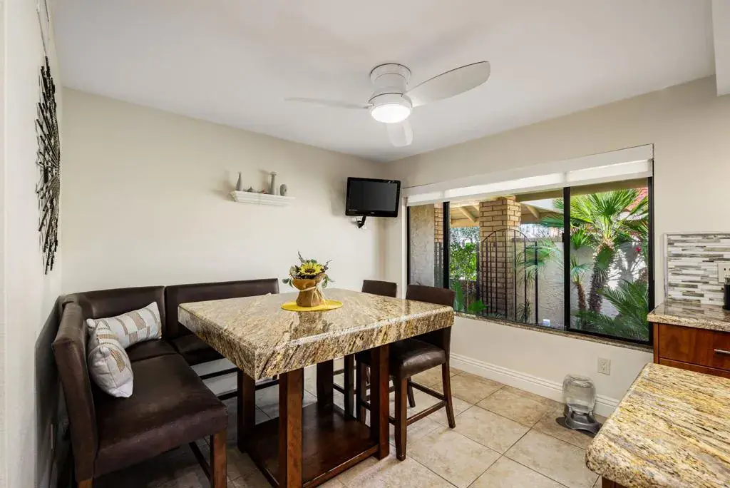 Welcome to prestigious Indian Wells Country Club in the heart of Indian Wells and nestled up to the majestic mountains that provide unparalleled desert views throughout the community and it’s renowned clubhouse, 2 championship 18 hole courses and social amenities. This updated Berghere condo has two bedrooms with ensuite baths and vaulted ceilings, along with a powder room, a bonus room with pull down murphy bed (man cave, office and fitness closet) with added interior living space. Multiple patio spaces will let you enjoy our desert sun at all times of the day. The primary bedroom is large, with a fireplace, full bath and large walk in closet. This property has fantastic curb appeal, two garage plus a golf cart garage, plush entry way and double French doors as you enter a spacious living area. Two fireplaces to add to the ambience, updated window coverings custom bar area, private patio area surrounded by greenbelt and trees with mountain views. A spacious kitchen with breakfast dining area giving the cook of the household plenty of entertaining areas. This home has an abundance of storage and space to accommodate and needs and is surrounded by the most beautiful desert settings you can find in the valley. Dining, shopping, tennis and golf awaits both inside and outside the gates of this one of kind community. As an additional benefit, Indian Wells residents also get discounted golf at the Indian Wells Resort Hotel across the street and tennis garden perks.
