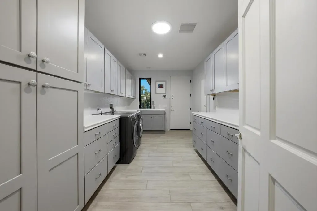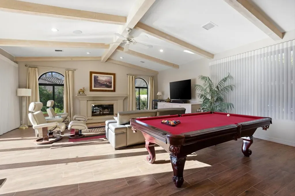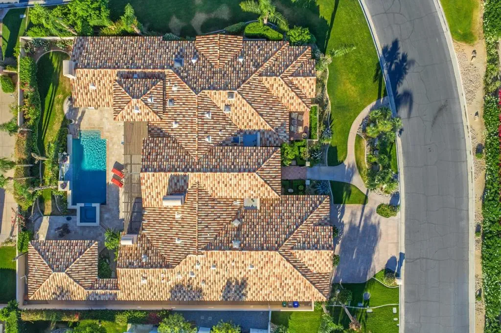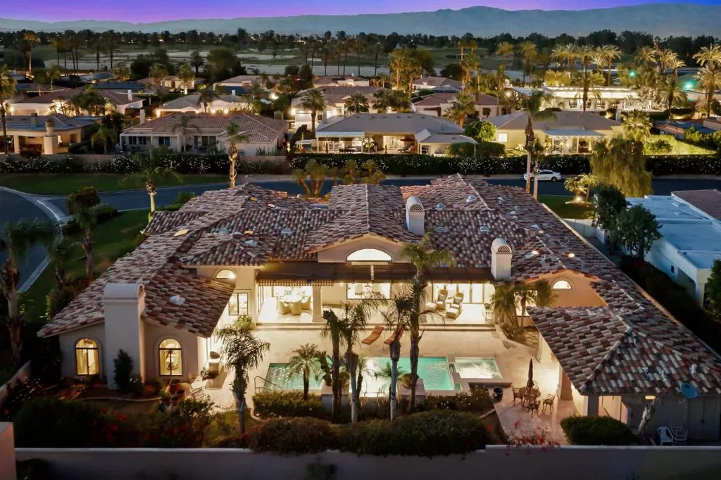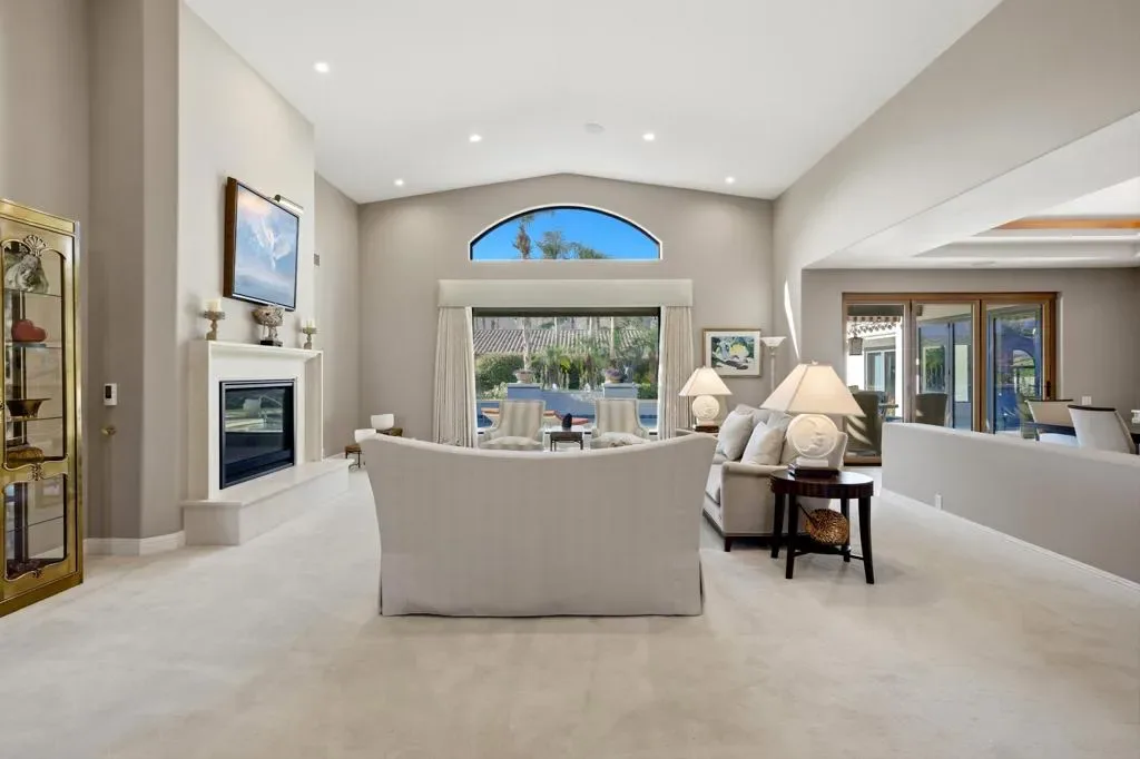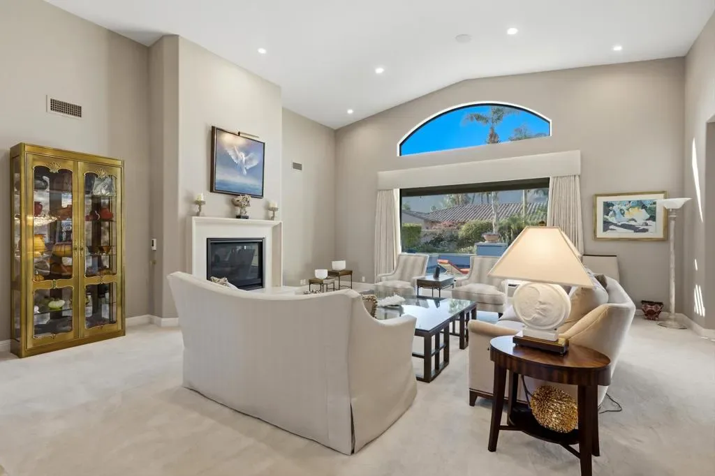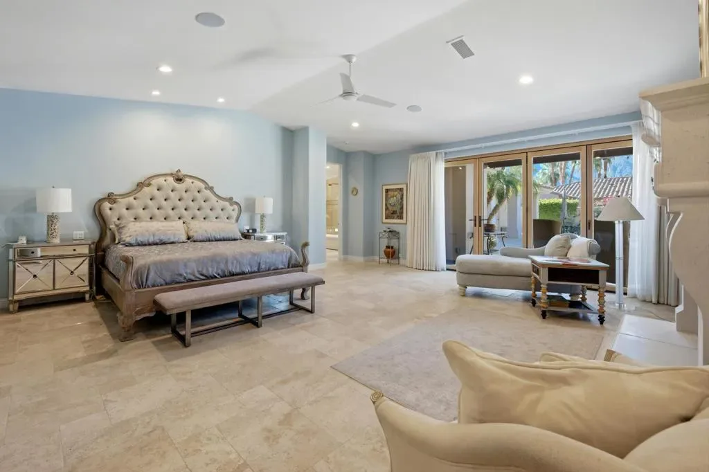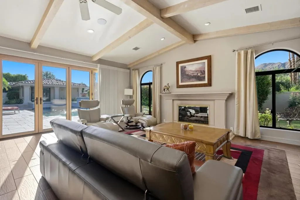 Located behind the gates of Indian Wells Country Club, this beautifully positioned residence captures the essence of desert living, with sweeping Santa Rosa Mountain views and a seamless indoor-outdoor experience. With 5 ensuite bedrooms, 6 1/2 baths, 4 fireplaces and on 1/2 Acre this is perfect if you are looking for a newer home since a much of the home was rebuilt in 2017. A grand entry with crystal chandelier opens to a wall of glass framing the pool, waterfall, and mountains, creating a natural connection between interior and exterior spaces.High volume ceilings and abundant natural light define the interiors, while thoughtfully designed walls, arches, and display niches throughout provide an exceptional backdrop for art. The formal living room with its large window expanses and fireplace offer a striking yet inviting setting, while the formal dining room with soffit lighting and fold away Nano doors s ideal for entertaining.The gourmet kitchen is appointed with Wolf appliances, 2 dishwashers, 2 refrigs, central island w/sink, warming drawer,walk-in pantry, built-in desk, soft close cabinets & a comfortable eating area-designed for both everyday living and gathering. It opens to a massive family room with fireplace & wet bar, creating a relaxed, functional space for casual moments.Most areas along the south side of the home open with Nano folding doors to the outdoor living area beyond, enhancing the indoor-outdoor connection & capturing the surrounding mountain views.The spacious primary suite is privately positioned in its own wing, featuring a sitting area, fireplace, & two large walk-in closets a dressing area, freestanding tub & large shower & more. Three guest bedrooms are located on the opposite side of the home, providing separation and privacy. The 5th bedroom is a detached Casita with kitchenette, offering comfortable accommodations for guests.Outdoor living is elevated with a saltwater pool and spa with pebble finish, a cascading waterfall feature, & expansive stone-tiled patios–all set against a stunning mountain backdrop.Features include 5 skylights, 5 solar tubes, newer flooring, newer windows throughout, surround sound speakers, whole-house water filtration system, tankless on-demand hot water, 6AC, roof tile replaced in 2017. The air-conditioned garage is ideal for a car collector, complete with work area, office, and bath. Cul-de-sac with only 2 homes. A rare offering combining scale, privacy, character, & refined des