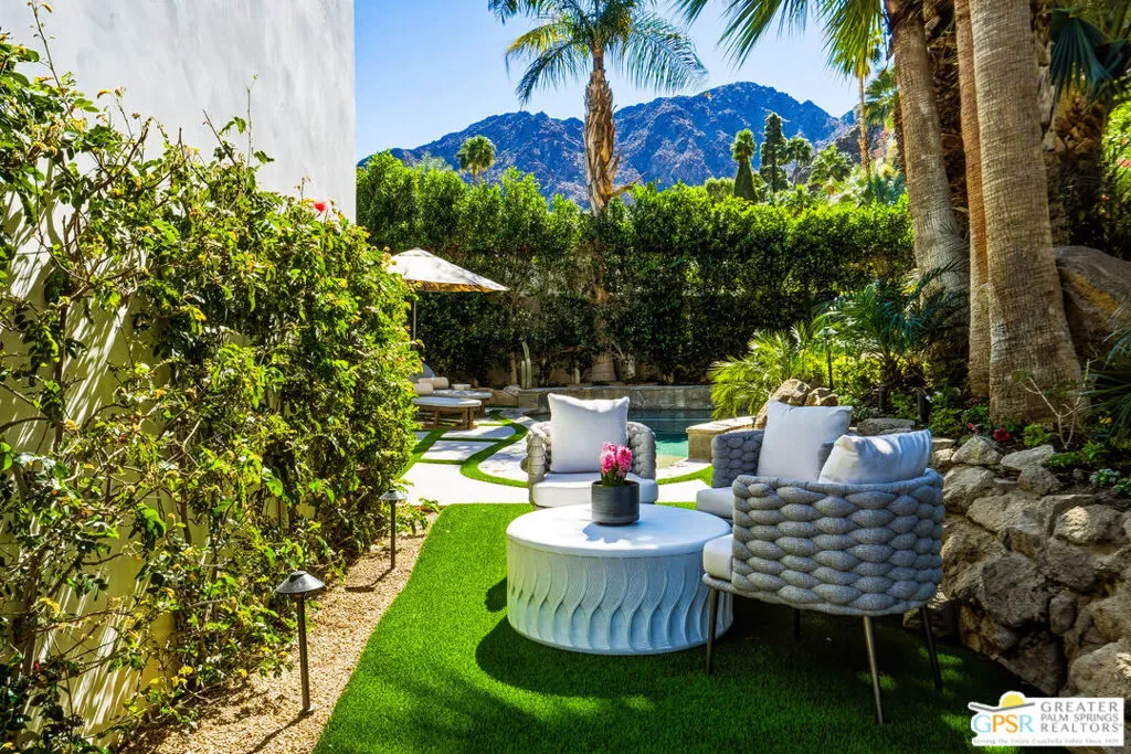 Welcome to 77013 Desi Drive, beautifully positioned against the breathtaking Santa Rosa Mountains within the prestigious Indian Wells Country Club community. This exquisitely remodeled residence offers a refined blend of luxury, comfort, and resort-style living. Step inside to discover a thoughtfully designed interior with sophisticated finishes and an inviting, modern aesthetic. The expansive primary retreat serves as a private sanctuary, featuring a spa-inspired bathroom with a soaking tub, oversized walk-in shower, and a relaxing seating area. Just beyond, enjoy the rare luxury of a private outdoor shower and tranquil seating space, creating a true spa-like experience. Each of the three additional bedrooms features its own en-suite bathroom, providing privacy and comfort for family and guests alike. The beautifully appointed chef’s kitchen showcases sleek modern finishes and beautiful appliances. A custom refrigerator, wine cooler, and dedicated coffee bar with a built-in ice maker elevate the space, making it as functional as it is stylish.Seamlessly blending indoor and outdoor living, large sliding doors open to an exceptional backyard oasis designed for both relaxation and entertaining. Enjoy a resort-style pool and spa, a built-in BBQ, and a pizza oven perfect for hosting unforgettable gatherings beneath the desert sky. All of this is set against stunning golf course views, offering a serene backdrop to everyday living with the added benefit of no HOA monthly dues. This is desert luxury living at its finest.
