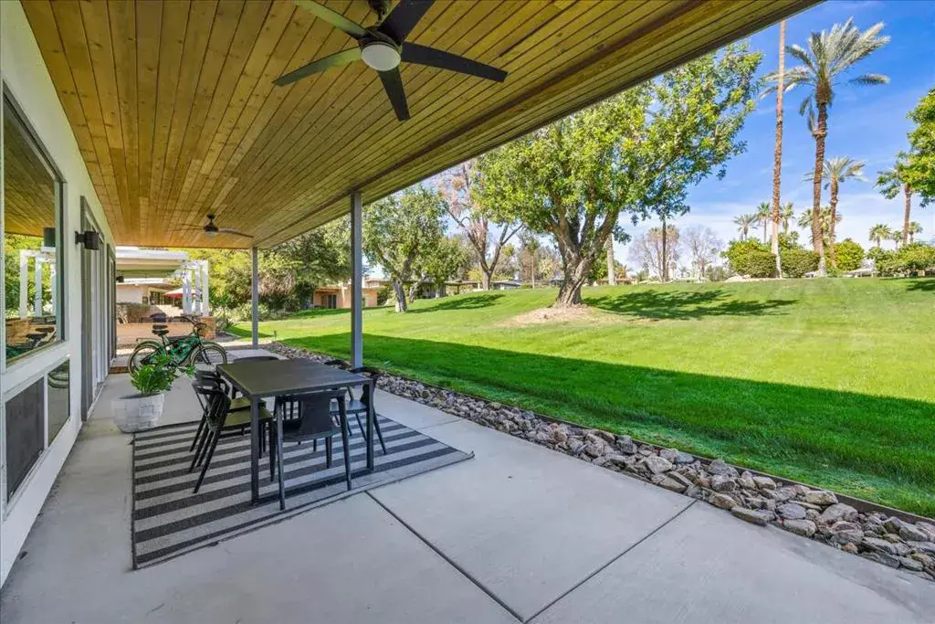 A rare offering in the coveted Indian Wells Village community, where modern luxury meets effortless desert living. This home was renovated down to the studs in 2018 creating vaulted ceilings and modernizing the construction. The 3 bedroom, 2 bath residence is offered fully furnished and has a proven track record as a successful vacation rental/second home, presenting an exceptional turnkey opportunity for both investors and those seeking a refined personal retreat.Perfectly positioned just moments from the world-famous Indian Wells Tennis Garden, this home places you at the center of premier events, dining, and recreation while maintaining a sense of privacy within an intimate enclave of only nineteen residences.Inside, walls of glass and stacking sliding doors seamlessly blend indoor and outdoor living, enhanced by automated blinds and thoughtfully curated designer finishes throughout. The open concept floor plan is both sophisticated and functional, featuring Smart Home Automation, a fully owned 19-panel solar system with Tesla Power wall, Hansgrohe kitchen and bath fixtures, designer wallpaper, and Jonathan Adler automated drapery in both the primary and guest bedrooms.Step outside to your private oasis, where a beautifully designed pool and tongue-and-groove wood patio cover create the perfect setting for relaxation or entertaining under the desert sky.Indian Wells Village stands apart as one of the few HOA communities in Indian Wells that allows short-term rentals with city restrictions, making this property especially valuable. With an OWNED SOLAR system and the low $400/month HOA fee that includes front- rear landscaping and pool maintenance allows for truly effortless ownership.This is more than a home. It is a lifestyle investment in one of the desert’s most sought-after locations.