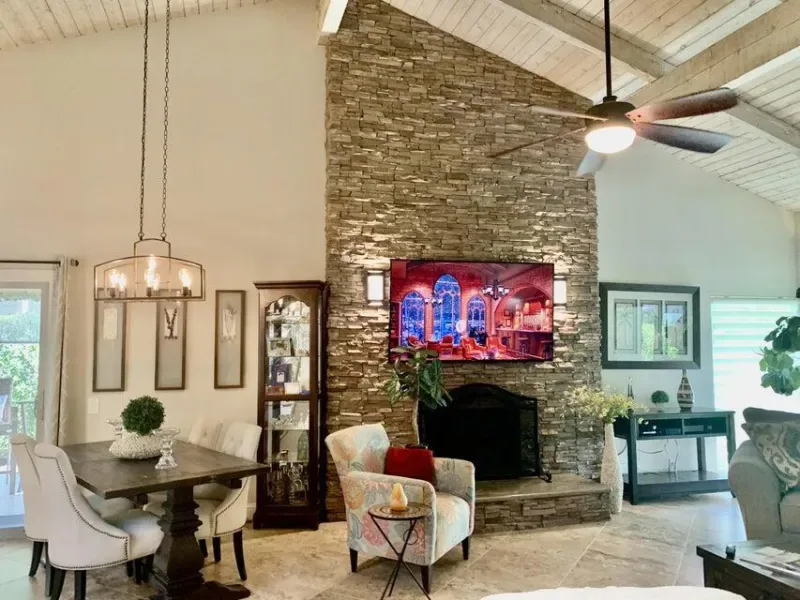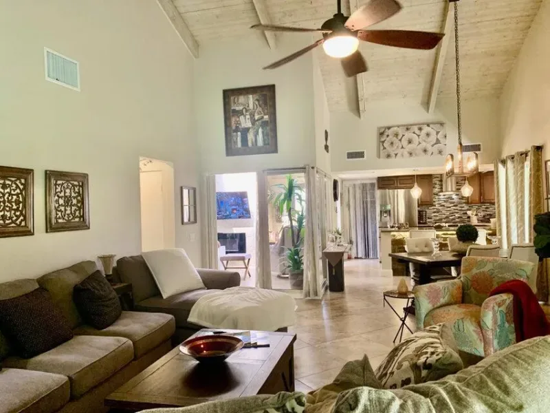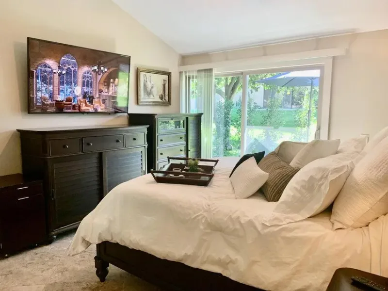 Welcome to Mountain Cove in Indian Wells! This beautifully updated single-story condo offers the perfect blend of comfort and desert charm. The upgraded kitchen features granite countertops and stainless steel appliances, ideal for both everyday living and entertaining.Step into the spacious living area with vaulted beam ceilings and a stunning stack stone fireplace, creating a warm and inviting atmosphere. The enclosed atrium provides a versatile sitting area–perfect for relaxing with a book or enjoying indoor-outdoor living year-round.This home includes two generously sized bedrooms, each with its own updated en-suite bathroom, offering privacy and convenience for residents and guests alike. An attached two-car garage adds practicality and ease.Enjoy the desert lifestyle from two large patios with breathtaking mountain views–ideal for morning coffee or evening gatherings. The home is offered turnkey furnished, making it move-in ready or perfect as a vacation retreat.Located just steps from the community pool and spa, and as an Indian Wells resident, you’ll enjoy exclusive perks including 20% discounts at many local restaurants, spas, and hotels, as well as discounted golf at Indian Wells Country Club.All this, just a short drive to El Paseo, known for its world-class dining, shopping, and entertainment.