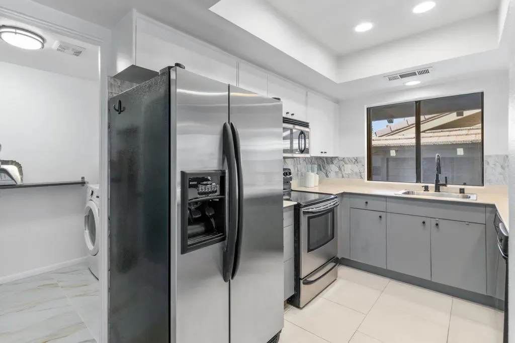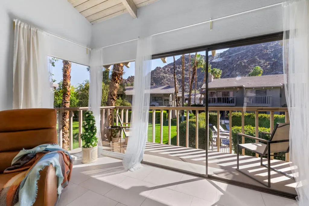 Long-Term or seasonal Lease Opportunity in Mountain Cove, Indian Wells! This remodeled two bedroom, 2 bath unit has vaulted ceilings and beautiful mountain views. The high ceilings and open floorplan create a bright, spacious, and airy living space that welcomes you as soon as you enter the front door. All rooms have balcony access providing ample outdoor space to enjoy the beautiful desert weather. The unit comes with a one car garage with space for storage. The community pool is located steps away from your front door. Tenant pays utilities; landlord covers HOA dues which includes water and trash. Available now–don’t miss the chance to lease in desirable Indian Wells!