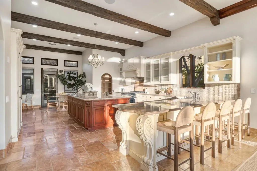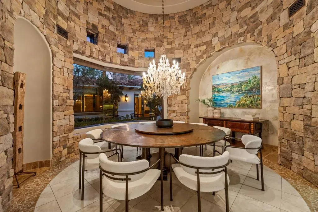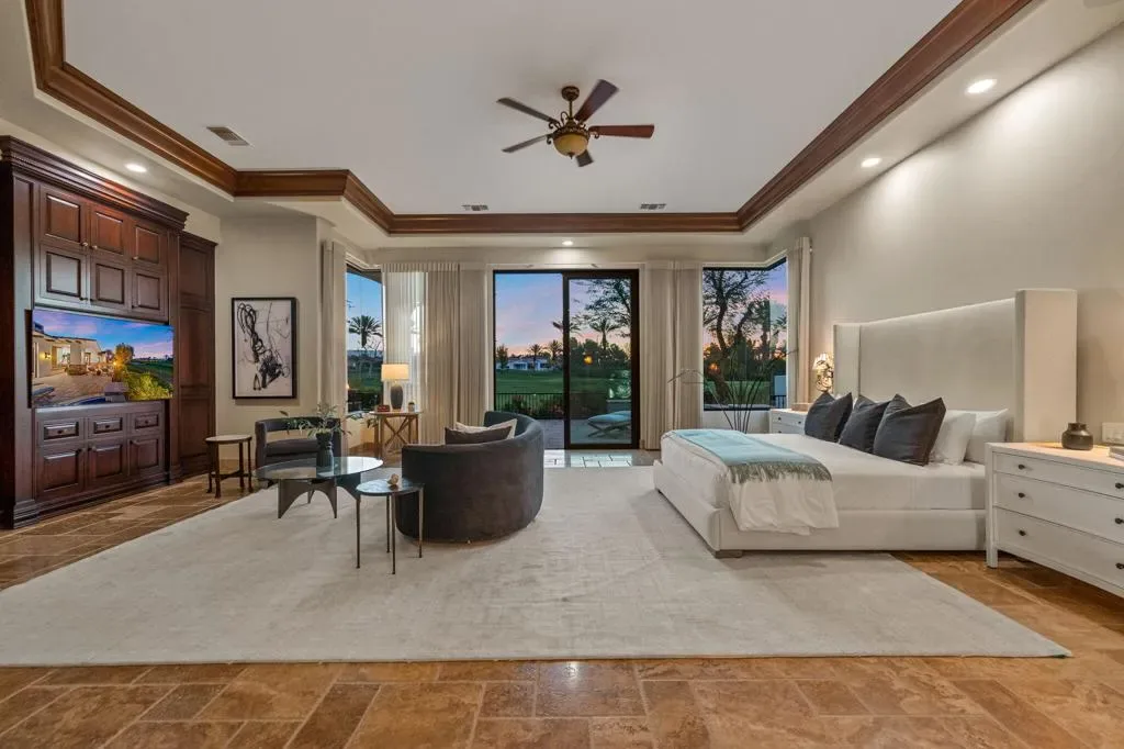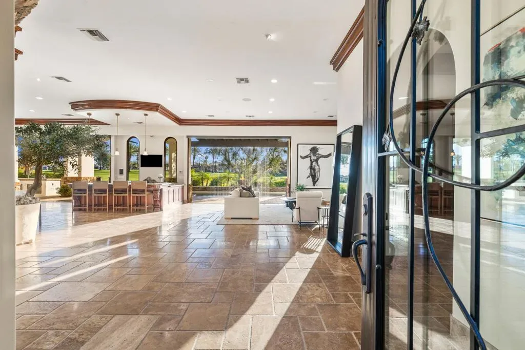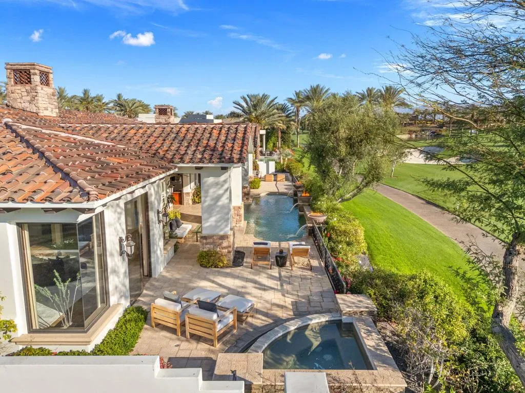 Located along the 18th fairway of the Jack Nicklaus South Course at Toscana Country Club, this custom estate blends Tuscan-inspired architecture with sweeping golf course and mountain views. Designed around a private courtyard and created for effortless indoor-outdoor living, the residence offers both architectural character and extensive modern upgrades.A grand entry introduces soaring ceilings, travertine flooring, and elegant crown molding throughout the main living spaces. Expansive pocketing glass doors open both the living room and great room to the outdoor entertaining areas, creating seamless indoor-outdoor living while framing panoramic fairway views beyond the pool.The backyard retreat is designed to feel like a private resort, featuring a custom pool and spa with water and fire features, a built-in barbecue, and beautifully updated landscaping with new irrigation, landscape lighting, and decorative wrought iron fencing along the golf course. The home’s location also offers convenient golf-cart access to the Toscana clubhouse and its private dining and social amenities.The spacious primary suite enjoys golf course views and direct access to a private spa separate from the main pool.Guest accommodations are exceptional with a detached two-bedroom casita complete with a sitting area and kitchenette, offering privacy and comfort for visitors. A versatile bonus room with an ensuite bath provides flexible space for a media room, office, or additional guest accommodations.During ownership, the home has undergone extensive upgrades and system improvements, including four high-efficiency HVAC systems (three 5-ton systems serving the main residence and one 4-ton system serving the casita) with Nest smart thermostats, a dedicated refrigeration system for the temperature-controlled wine cellar, and ductless mini-split systems in both garages.Additional improvements include full interior and exterior repainting, new recessed LED smart lighting throughout, Lutron switches and outlets, a 14-zone whole-home audio system with 16 speaker pairs, and integrated smart home controls for lighting, pool features, thermostats, and audio via four wall-mounted iPads.The home also features new dual Cove dishwashers, LG washer and dryer, and owned solar for energy efficiency.With its thoughtful upgrades, timeless architecture, and prime fairway setting, this is an exceptional opportunity to enjoy luxury golf course living in one of Toscana Country Club’s mos