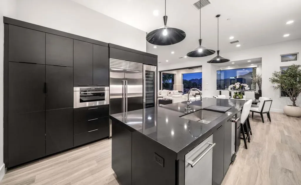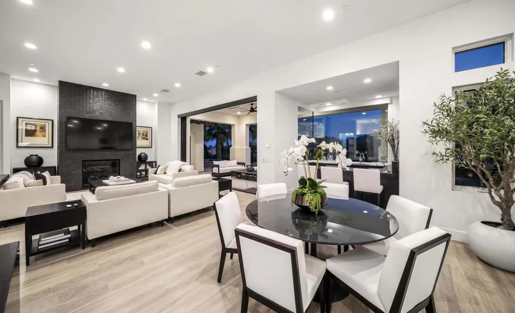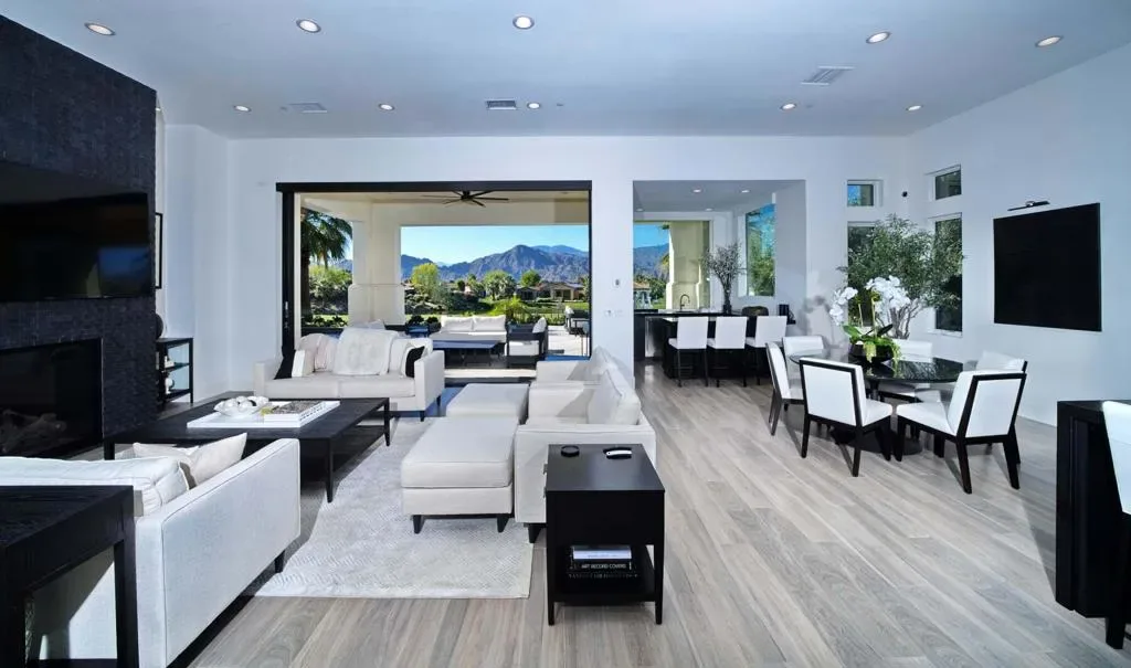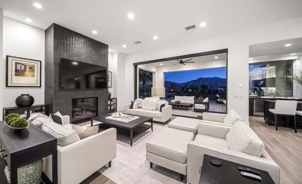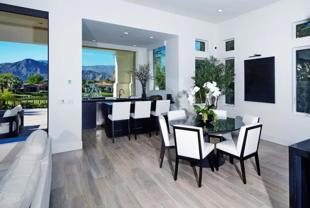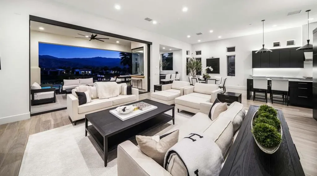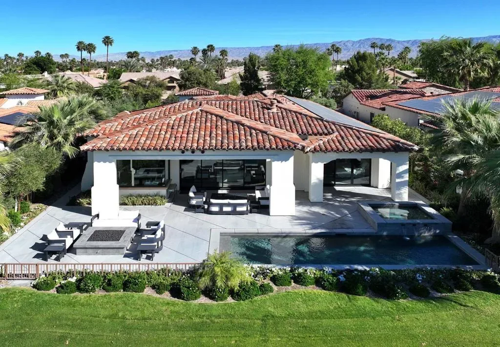 This newer-built Plan 531 inside Toscana Country Club is ideally situated on the 12th fairway of the Jack Nicklaus Signature North Course, offering beautiful south-facing views and a serene desert setting. Designed with contemporary finishes throughout, the home showcases an open-concept floorplan that seamlessly blends indoor and outdoor living, highlighted by expansive pocketing sliders that open to the outdoor spaces. Owned solar adds efficiency and long-term value.The spacious great room flows effortlessly into the dining area and gourmet kitchen, creating the perfect space for entertaining. The kitchen is centered around a large island with breakfast bar seating and is appointed with ample cabinetry, generous counter space, and premium Wolf and Sub-Zero appliances–ideal for both everyday living and hosting.The primary suite offers a private retreat with a spa-like en-suite bath, while guests are comfortably accommodated in the main home guest rooms, each with their own en-suite baths. Whether enjoying the sunshine, taking in the fairway views, or relaxing in the thoughtfully designed living spaces, this home embodies the best of desert luxury living.