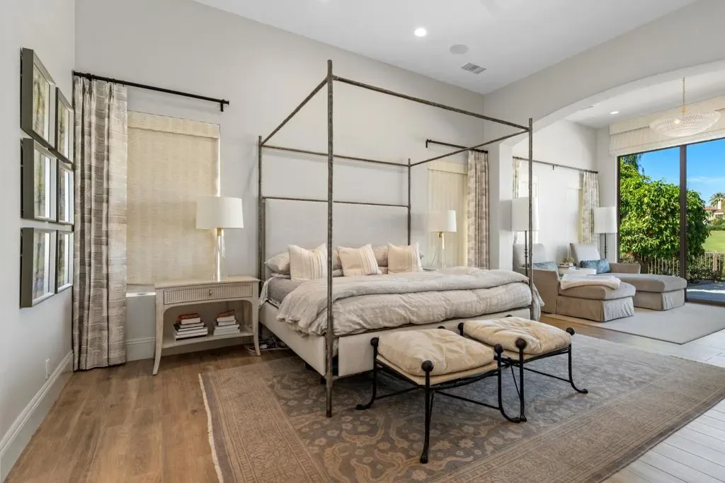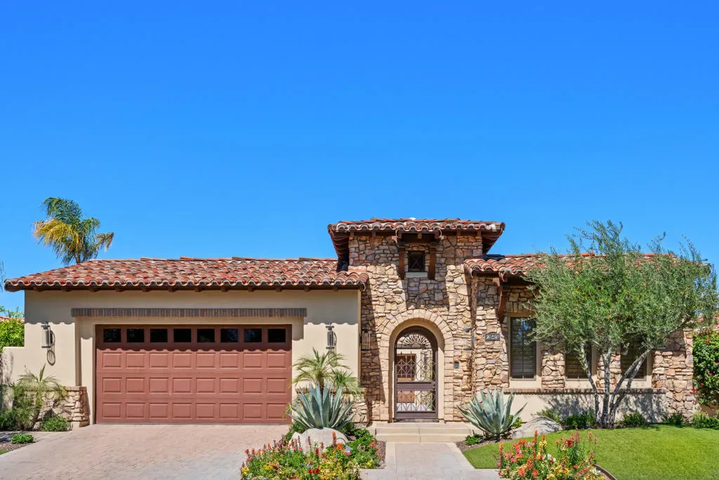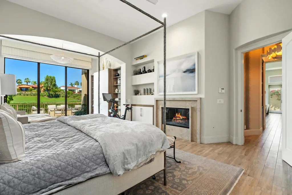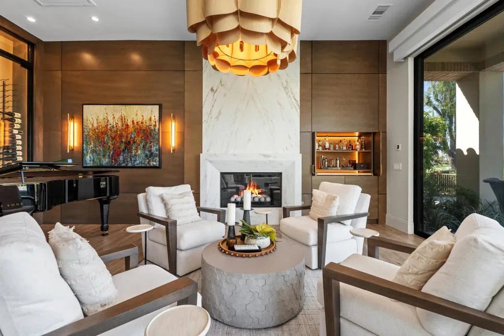 Experience resort style living at its finest in this exquisitely reimagined residence, perfectly positioned along the picturesque 8th hole of the South Course in the prestigious, guard gated community of Toscana. Recently renovated inside and out by a top design firm, this home blends modern elegance with timeless sophistication, offering an unparalleled living experience.Inside, dramatic disappearing pocket doors create a seamless connection between the refined interior and the breathtaking outdoor oasis. The great room is anchored by one of the home’s three fireplaces, complemented by whole house audio, sleek electric blinds, and designer finishes throughout. Entertaining is effortless with a hidden bar, ideal for intimate gatherings or lively celebrations, and a stunning temperature controlled wine wall that showcases your collection in style.The gourmet kitchen and living spaces flow effortlessly to the outdoors, where a fully renovated pool features tranquil waterfalls and all new equipment. Enjoy evenings under the stars, hone your short game on the private putting green, or unwind on the expansive patio overlooking double fairway and mountain views.The luxurious two room casita offers exceptional comfort for guests, complete with French doors leading to a private patio, creating a serene retreat. Additional highlights include owned solar, a 3 car finished garage with AC, and designer enhancements at every turn.This is more than a home — it’s a beautifully curated lifestyle. Welcome to your private sanctuary in Toscana.