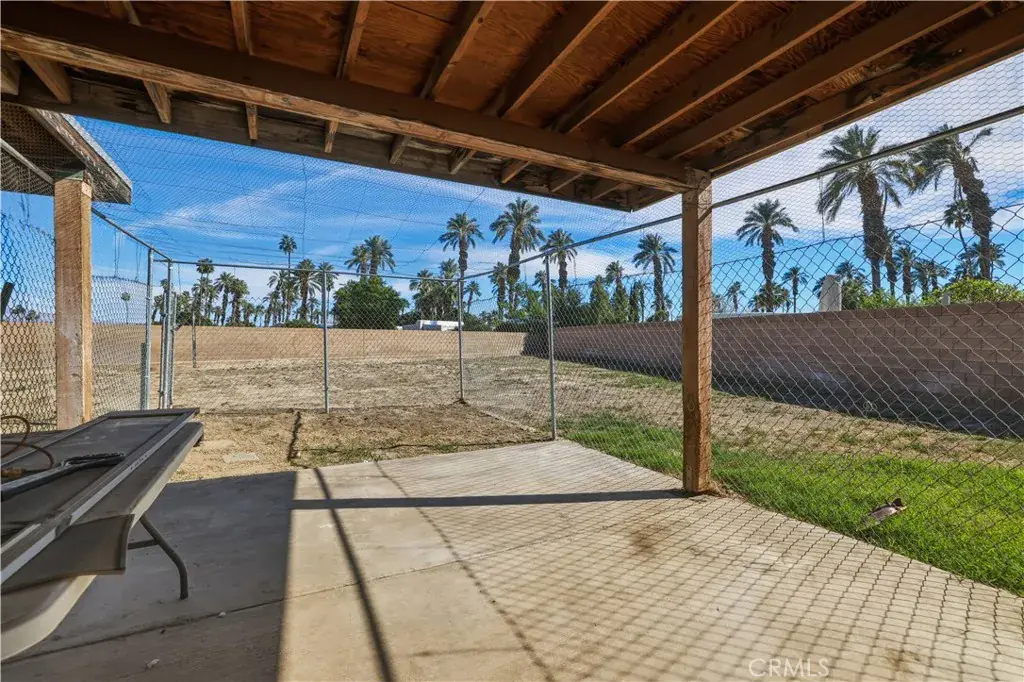 Welcome to 46482 Jasmine Lane, a rare opportunity in the highly sought after Shields Ranch community on the border of Indio and La Quinta. Positioned on a premium corner lot at the back of the community, this home sits on an expansive 13,939 square foot parcel, one of the largest in the neighborhood. The size and placement provide outstanding privacy and usable outdoor space. ** NEW Heating and A/C, ** With NO HOA and NO Mello Roos, you can create the lifestyle you envision, whether that means a custom pool and spa, detached casita, sport court, RV parking, or an entertainer’s backyard designed to your taste. This well maintained, all original home offers 3 spacious bedrooms and 2 bathrooms. A cozy front patio near the entry is perfect for morning coffee while enjoying desert skies and mountain sunsets. Inside, you will find a formal living room and dining room, plus a comfortable family room with a fireplace for relaxed evenings. The kitchen features generous cabinet storage, ample counter space, a walk in pantry, and a two seat breakfast bar near the sink to stay connected with guests. An interior laundry closet is located just off the kitchen. The primary suite includes dual French doors to the backyard and an en suite bath with dual sinks, soaking tub, and separate shower. The hallway offers linen storage, and the guest bath includes a tub and shower. Two additional spacious bedrooms complete the layout, including one with a bay window and built in bench. The exterior highlights palm trees, desert landscaping, and mountain views. A sleek two car garage featuring designer epoxy flooring, abundant built in storage, and a polished finish that makes it the perfect showcase for car enthusiasts. Just minutes from the Empire Polo Grounds, home to the Coachella Valley Music and Arts Festival and Stagecoach Festival, you are close to the area’s top events. Enjoy easy access to shopping and dining in both Indio and La Quinta, with retailers such as Costco, Trader Joe’s, Walmart, and Best Buy nearby. Short term rentals are allowed, offering strong potential for seasonal use or income.