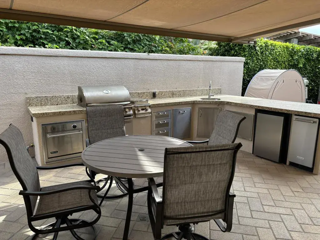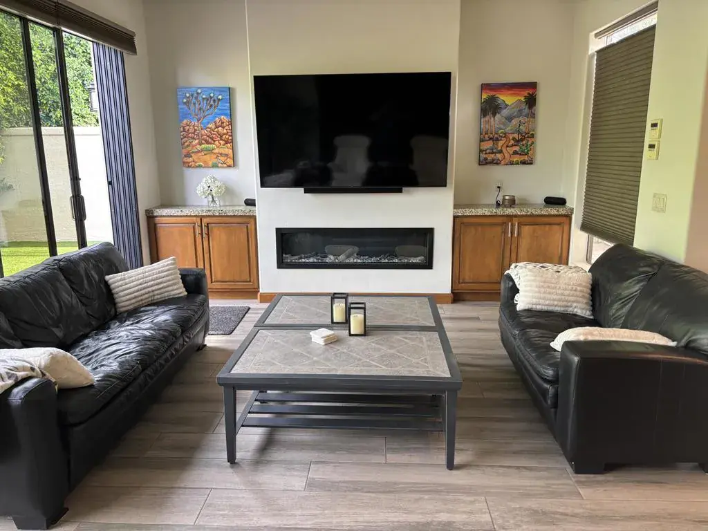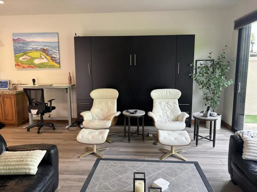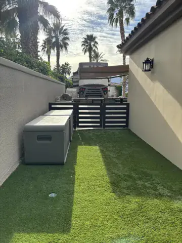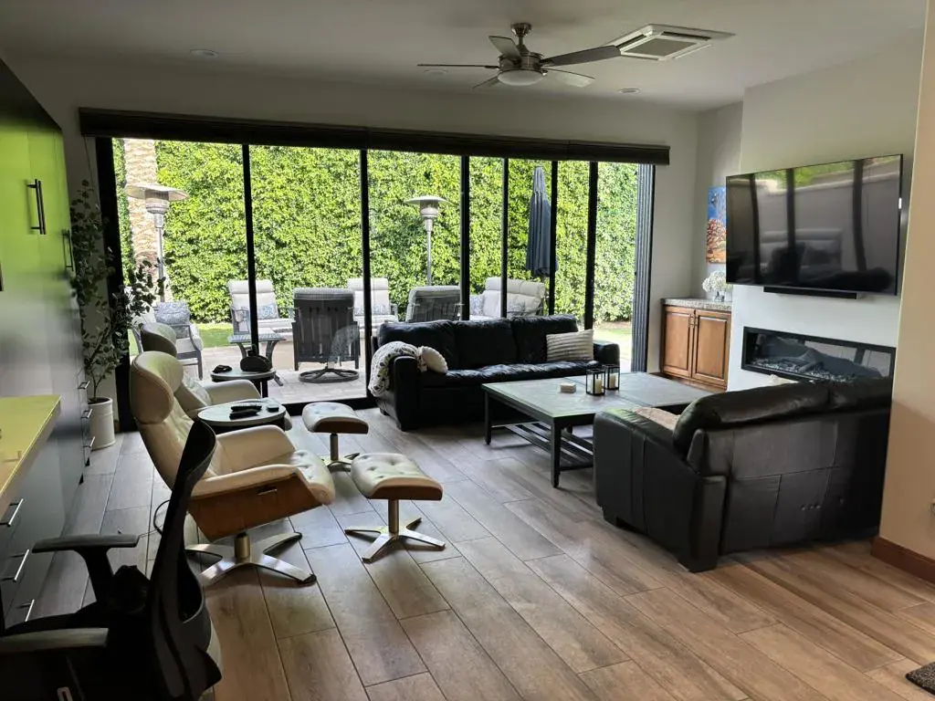 Private Luxury Retreat with Exceptional Outdoor Living at Motorcoach Country ClubWelcome to Lot 363, a beautifully upgraded and private retreat designed for comfort, entertaining, and effortless resort-style living. From the moment you arrive, you’ll appreciate the extensive custom pavers, gated privacy, and thoughtfully designed outdoor spaces that make this property truly special.The backyard is a private oasis featuring lush artificial turf–perfect for pets–along with stunning mountain views and an impressive natural gas fire feature that creates a warm and inviting ambiance. Elegant patio furnishings and a long linear fire feature provide the ideal setting for relaxing evenings or entertaining guests in style.The fully gated outdoor kitchen is truly fit for a chef. Outfitted with premium stainless-steel appliances, including a Viking outdoor gas oven, Cal Flame barbecue, double burner, stainless sink, refrigerator, and KitchenAid ice maker, this space offers everything needed to host unforgettable gatherings. Expansive granite countertops provide abundant prep and serving space, while a large retractable awning ensures comfort and shade.Inside the beautifully appointed casita, luxury and functionality blend seamlessly. A stunning oversized electric fireplace serves as the focal point of the living area, complemented by a large 75-inch LG flat-screen television with sound bar. A king-size Murphy bed with abundant cabinetry provides comfortable accommodations for overnight guests while maximizing living space.The interior features beautiful wood-style tile flooring, granite countertops, and a fully equipped kitchen with premium appliances, including a Samsung natural gas cooktop, Frigidaire oven, Frigidaire convection oven, side-by-side refrigerator, dishwasher, and stainless-steel sink. The bathroom is equally impressive, showcasing a custom-tiled walk-in shower with elegant rock accents and generous storage throughout.Additional highlights include blackout shades for privacy, two ceiling fans, and three split-system heating and air conditioning units to ensure year-round comfort.The front of the lot offers additional outdoor enjoyment with another natural gas fire feature and custom paver finishes, creating a welcoming and refined entrance.Lot 363 delivers the perfect balance of luxury, privacy, and functionality. Ownership at Motorcoach Country Club includes access to world-class amenities, including championship golf, resort-style pools.