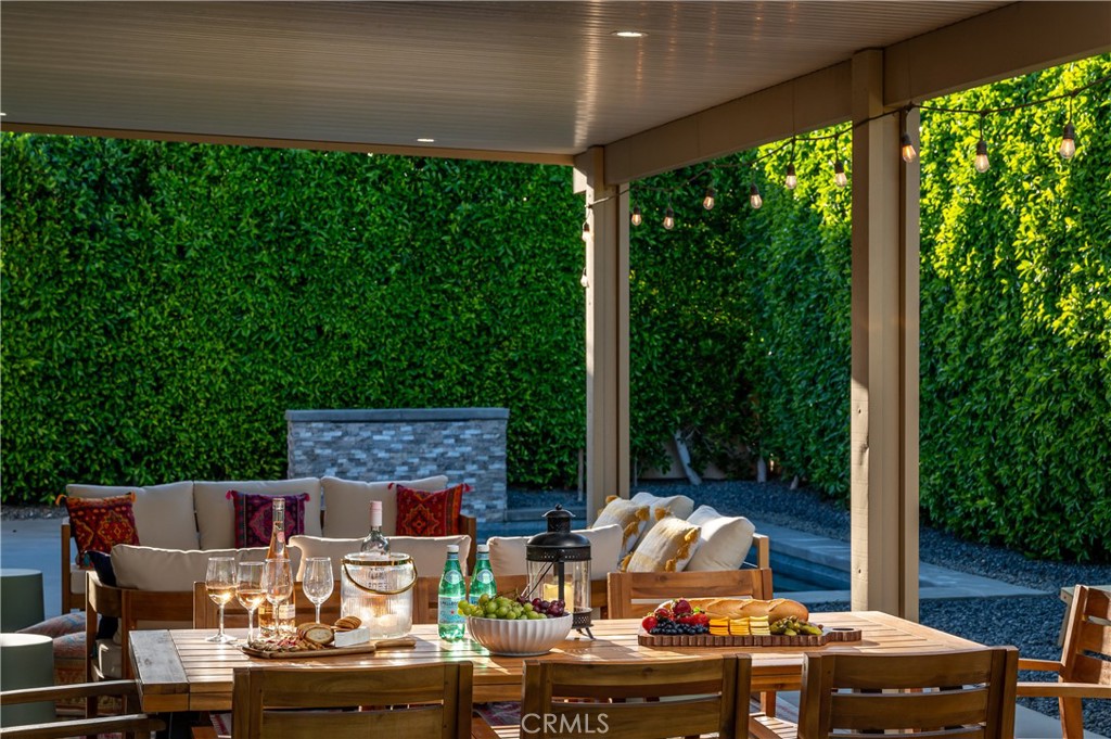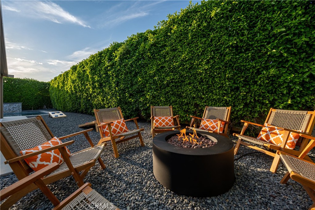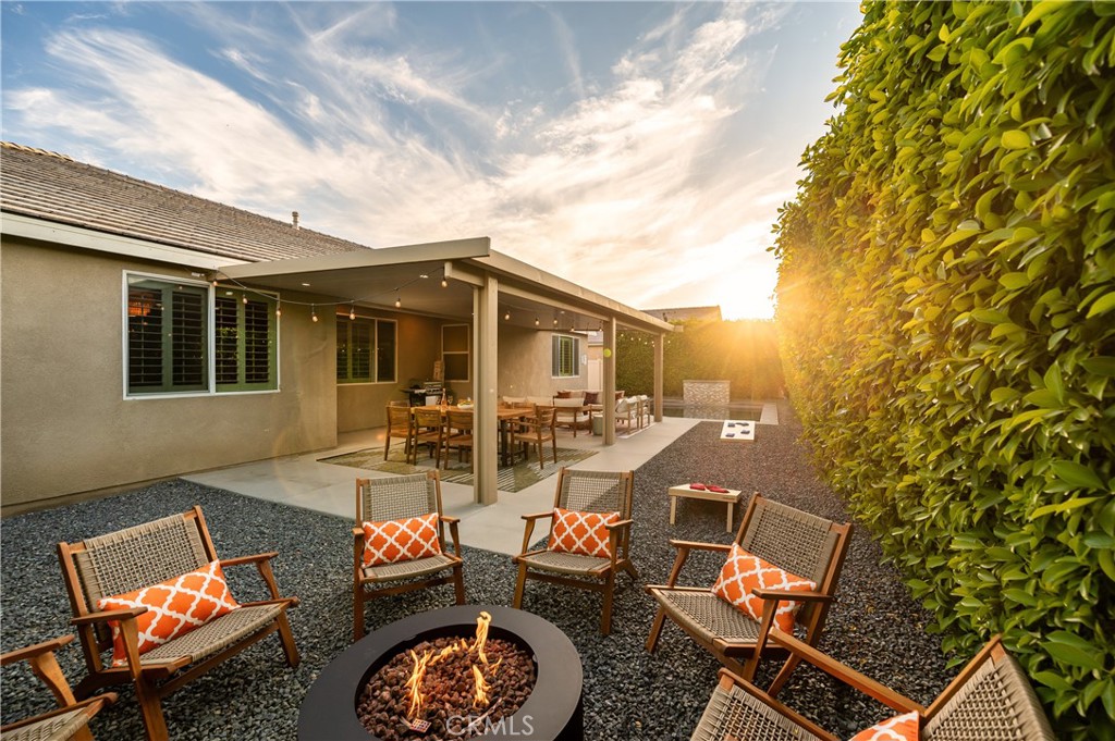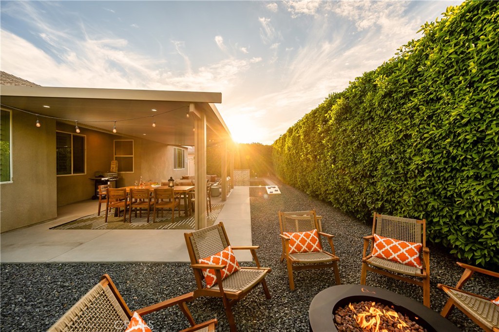 Outdoor living is equally impressive, featuring a covered patio perfect for dining and relaxation, along with a dedicated fire pit area designed for unforgettable desert evenings.