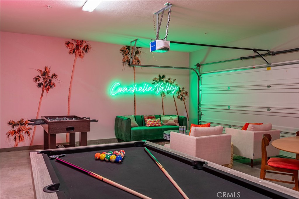 Enhancing the property’s appeal, the garage has been transformed into a stylish, fully equipped game room featuring a pool table and additional entertainment amenities, creating a standout experience for guests.