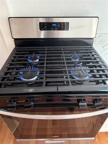 The home offers new washer and dryer in an interior laundry room adyacente to a fully equipped kitchen and dining area.
