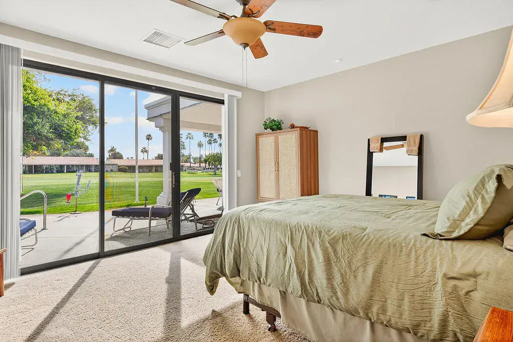 Fabulous home with gated parking plus golf course view! 4 bedrooms, 4 bathrooms, office and fairway view on the par 5 13th fairway. Double door leaded glass entry doors open to volume ceilings, walls of glass, a floor to ceiling stone fireplace, a convenient sit-down wet bar. The island kitchen has slab granite counters and stainless-steel appliances. Primary suite with walk in closet and sliders to the pool area has a large jacuzzi soaking tub and spacious separate shower. There are two-bedroom suites. Another bedroom has glass sliding doors to the pool and covered back patio. There is a built-in BBQ. This is an entertainer’s delight! Two newer electric A/C systems. Owners include electricity, gas, water up to $200mo. Owners include cable TV with two boxes, Internet with Spectrum plus trash service. Electricity, gas, water is included up to $200.00 per month. Bermuda Dunes Country Club has 24-hour guard gate. 3-month minimum. Contact agent for more information. Owners use during month of April.