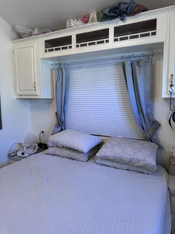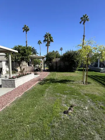Located in the beautiful Desert Aire resort. Desert Aire is an over 55, pet free, 9 month park. Desert Aire does not permit full time residency. This park is primarily used by snow birds looking to spend the winters in our warmer climate.This is a beautiful and well appointed park model and definitely shows pride of ownership. This 2003 park model has a great location, sits on an oversized lot and offers views of the mountains and one of the many water features located throughout the park. If you are looking for a park model that has everything you need or want, then this is it!!Starting with the beautiful landscaping which is almost 100% maintenance free. All of the trees have a unique deep water irrigation system. There is a raised planter bed on the patio currently planted with flowers. The patio backs up to a large common area with grass and trees that is maintained by the park grounds crew.The huge patio has areas for sun and shade almost anytime during the day. The beautiful patio furniture is comfortable and new with lots of seating and dining areas. There are also new privacy shades located on the patio. The shed offers a washer and dryer with a hot water heater which is rare. There are storage cabinets and a mini fridge.Stepping inside the park model, you will see the attention to detail with so much to offer. There is tiled flooring throughout the park model for easy maintenance. You will see two lazy boy wall hugger chairs, a sofa sleeper, dining set and flat screen TV. There is a full size range, dishwasher, stainless steel sink, microwave oven and a full size stainless steel refrigerator with ice maker.The bathroom offers a beautiful tiled walk in shower with matching backsplash around the sink.The bedroom is light and airy with tall ceiling, lots of storage, ceiling fan and a newer mattress.Some of the other features include, new water heater, newer custom window coverings, tinted windows and the interior was repainted in 2023.THIS PARK MODEL IS MOVE IN READY WITH ALL INTERIOR FURNITURE, KITCHEN AND BATH WARE, BEDDING, PATIO FURNITURE, SHED, WASHER & DRYER IS INCLUDED IN THE SALE.