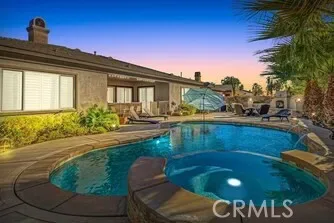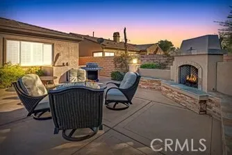 Located in a gated community north of I-10 at Golf Club Drive, this Marquese Plan residence offers exceptional desert living with a private pool and spa. Just one block from the lake, residents enjoy scenic walking trails, catch-and-release fishing, electric-powered boating, and stunning mountain views. The home features three bedrooms and three baths, including two spacious primary suites. The well-designed kitchen offers abundant counter and storage space, highlighted by a wide granite countertop with seating for four, and opens to a dining area with plantation-shuttered doors leading to the poolside patio with fireplace and built-in grill, ideal for entertaining. The living room is anchored by a gas fireplace and framed by shuttered windows and doors overlooking the pool and spa. The primary suite includes a walk-in closet and a spa-inspired bath with dual sinks, a jetted soaking tub, and a separate shower. Offered turnkey furnished, this thoughtfully appointed home is set within a wonderful community and ready to enjoy.