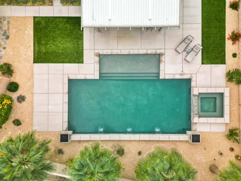 Welcome to resort living in the sought-after Four Seasons at Terra Lago in Indio. This stunning 2-bedroom, 2-bathroom home offers approximately 2,100 sq. ft. of thoughtfully designed living space, perfectly blending comfort, elegance, and indoor-outdoor living.In addition to the two bedrooms, the home features a spacious den that can easily be converted into a third bedroom by adding a closet. Generously sized, this versatile space is ideal as a guest bedroom, home office, or office, offering plenty of room to suit your lifestyle needs.Step into an incredible, completely reimagined backyard–an entertainer’s dream. Enjoy a custom pool and spa, featuring a hot tub that overflows into the pool, accented by beautiful water fountains that create a tranquil, luxury resort ambiance. The expansive backyard offers ample space to relax, entertain, or unwind, all enhanced by built-in outdoor speakers, perfect for enjoying music while hosting guests or relaxing under the desert sky.The home also features a deep garage with ample length, providing enough space to comfortably park a large truck while still allowing room for storage.Inside, the home is open, bright, and inviting, making it ideal for both full-time living and seasonal enjoyment. Located within a premier guard-gated community, residents of Four Seasons Terra Lago enjoy world-class amenities including a clubhouse, fitness center, pools, social activities, and more.This is desert living at its finest–privacy, luxury, flexibility, and lifestyle all in one exceptional property.