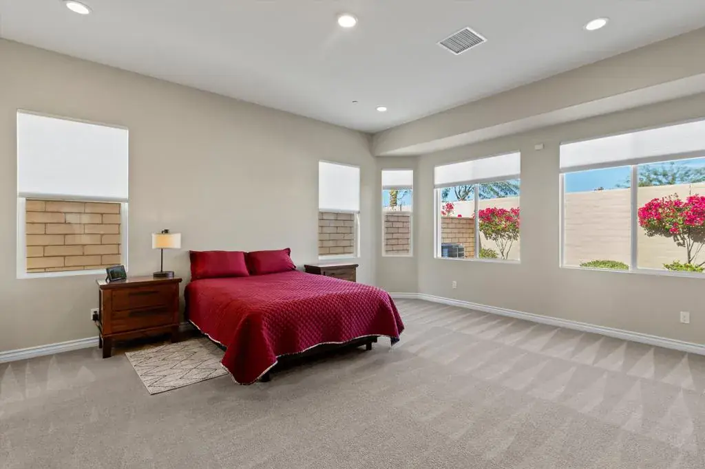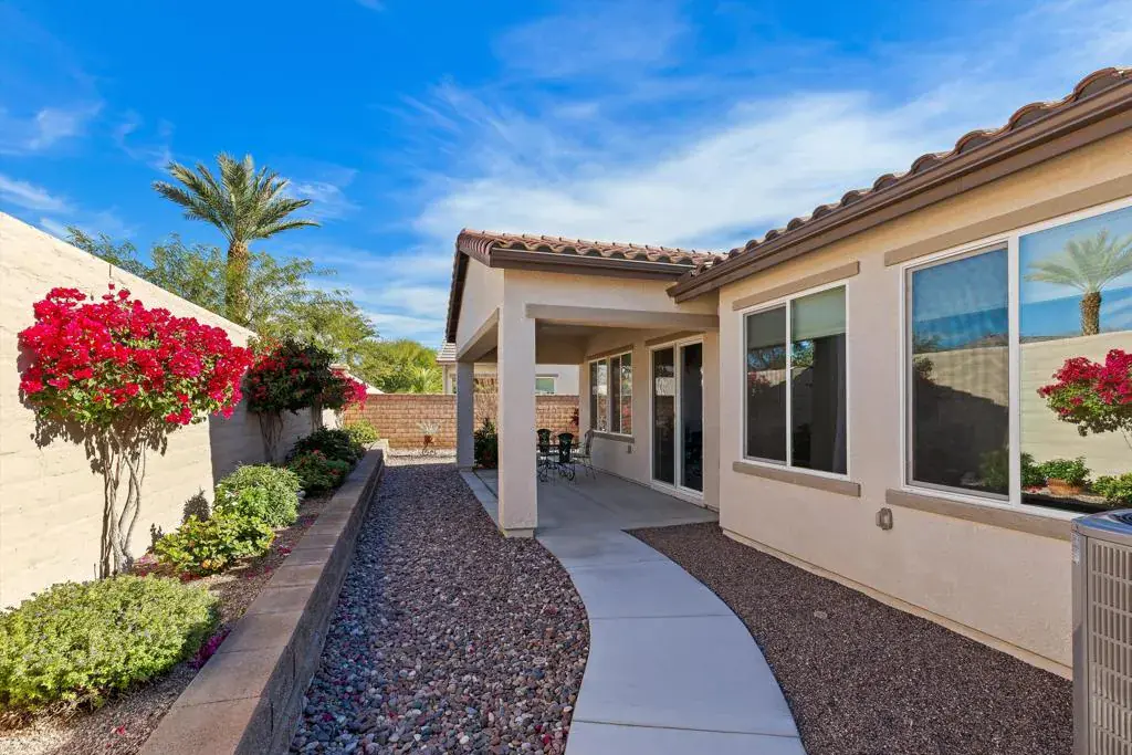 Welcome to resort-style living in the award-winning Four Seasons at Terra Lago, a premier 55+ active adult community in the heart of the Coachella Valley. This impeccable 2019-built Mecca Hills floor plan offers 2,152 square feet of single-story living with 2 bedrooms, 2.5 bathrooms, and a versatile flex room perfect for a home office, fitness studio, or creative retreat.The open-concept layout flows effortlessly from the gourmet kitchen with its generous island to sun-filled living and dining spaces framed by stunning mountain views. The spacious primary suite accommodates a king bed with ease, while the spa-inspired ensuite features a large walk-in shower, dual vanities, and ample closet space. A private guest suite with dedicated bathroom ensures comfort for visitors.Beyond your front door, The Lodge, a 22,000 square-foot clubhouse, serves as the heart of the community with a state-of-the-art fitness center, indoor and outdoor pools, tennis and pickleball courts, bocce ball, a ballroom, library, bistro, and on-site salon and massage services. Clubs range from book discussions to watercolor painting, with social activities filling every day of the week.The lifestyle here is unmatched. Named the City of Festivals, Indio attracts more than 1 million visitors each year for world-famous events like Coachella and Stagecoach. The nearby Acrisure Arena hosts top concerts, professional hockey, and premier entertainment year-round. Golf enthusiasts will find paradise with over 100 courses throughout the valley, while nature lovers can explore Joshua Tree National Park, the Indian Canyons, and desert hiking trails just minutes away. Enjoy polo matches, the Living Desert Zoo, legendary date shakes at Shields Date Garden, or gaming at Fantasy Springs Resort Casino.Convenience abounds with quick access to Interstate 10, shopping centers nearby, Palm Springs just 20 miles away, and the international airport only 30 miles out. The upscale boutiques of El Paseo and endless dining options complete the picture.This is more than a home–it’s your invitation to embrace an active, connected lifestyle where every day feels like vacation.
