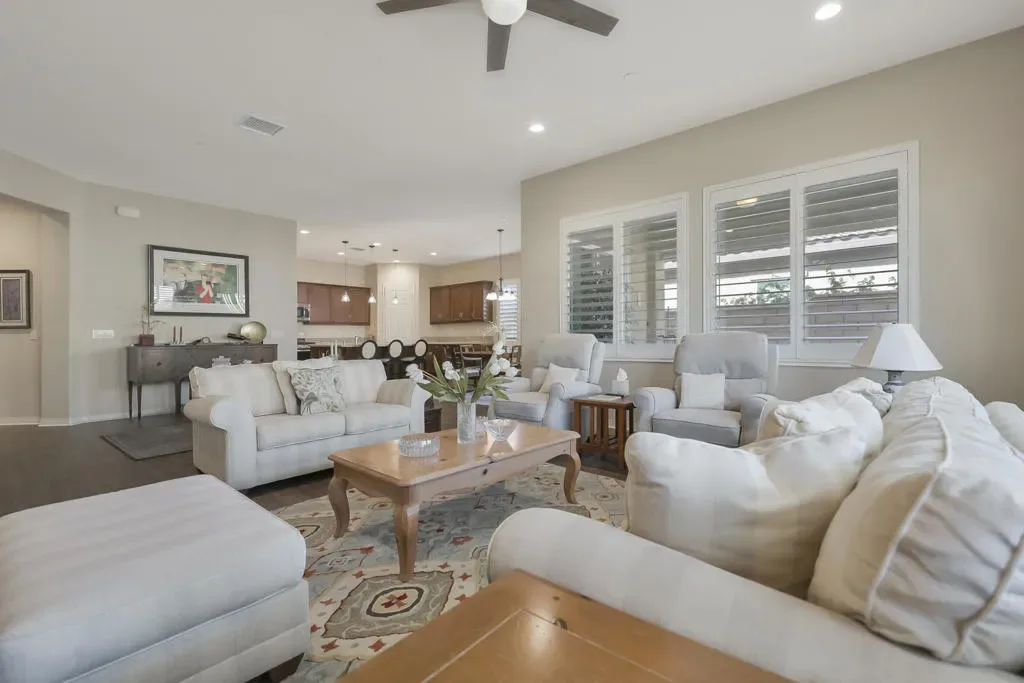 Welcome to 85648 Molvena Drive, nestled inside the highly sought-after 55+ active adult community of **Four Seasons at Terra Lago** in beautiful **Indio**.This exceptional residence offers the perfect blend of comfort, elegance, and resort-style living. Designed with both everyday enjoyment and effortless entertaining in mind, the home features a spacious open-concept floor plan, abundant natural light, and thoughtfully curated finishes throughout. The well-appointed kitchen flows seamlessly into the great room and dining area, creating an inviting space for gatherings with family and friends.The private primary suite serves as a relaxing retreat, complete with a generous walk-in closet and a spa-inspired bath. A secondary **en suite bedroom with its own private bathroom** provides ideal accommodations for visiting guests, offering both comfort and privacy. In addition, there is a versatile **den/office** that can easily function as a home workspace, media room, or hobby area to suit your lifestyle.Step outside to a beautifully designed backyard featuring decorative **pavers** and a tranquil **water feature**, creating a peaceful setting for morning coffee, evening relaxation, or outdoor dining under the desert sky.Living in Four Seasons at Terra Lago means embracing an active, vibrant lifestyle. Residents enjoy access to a stunning clubhouse, fitness center, resort-style pool and spa, tennis and pickleball courts, walking trails, and a full calendar of social events and clubs. With breathtaking mountain views and close proximity to golf, dining, shopping, and entertainment, this is desert living at its finest.85648 Molvena Drive is more than a home — it’s a lifestyle.Book your private viewing today!