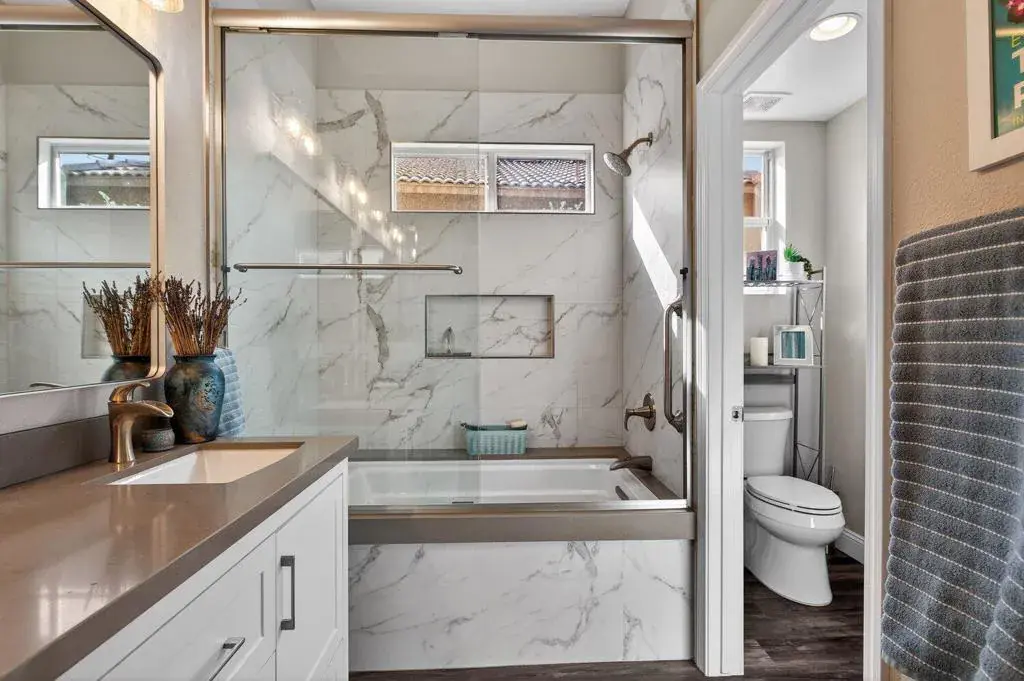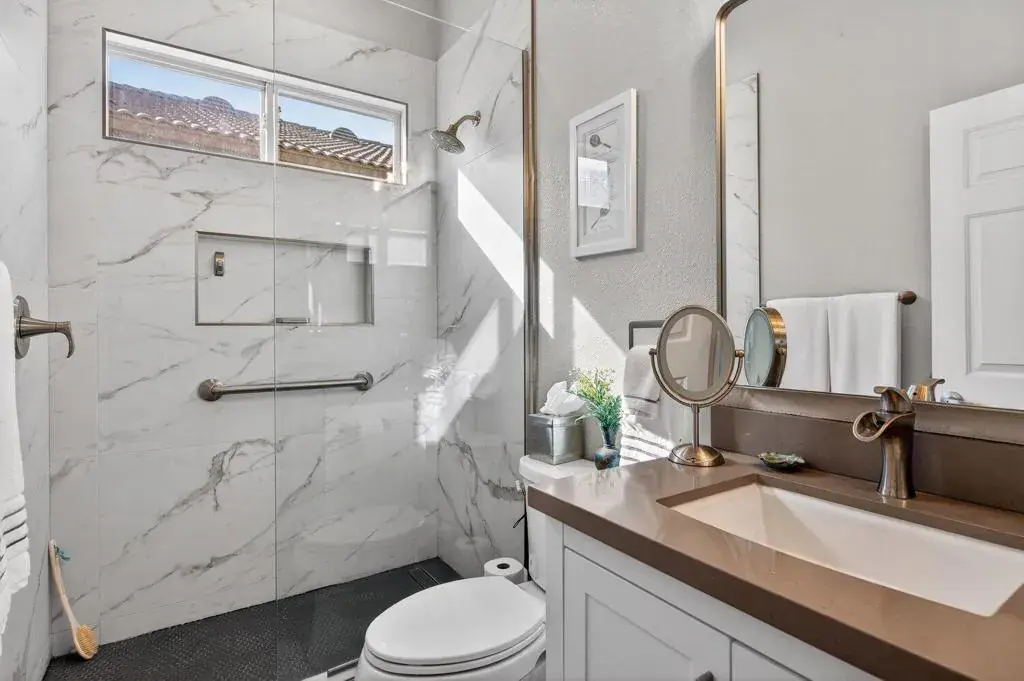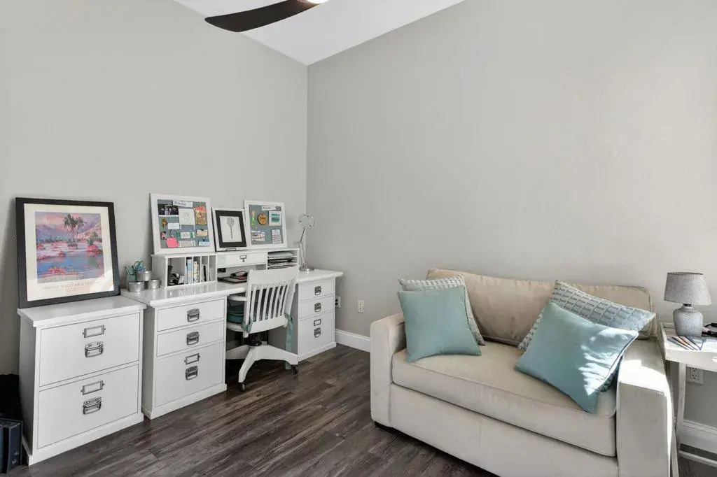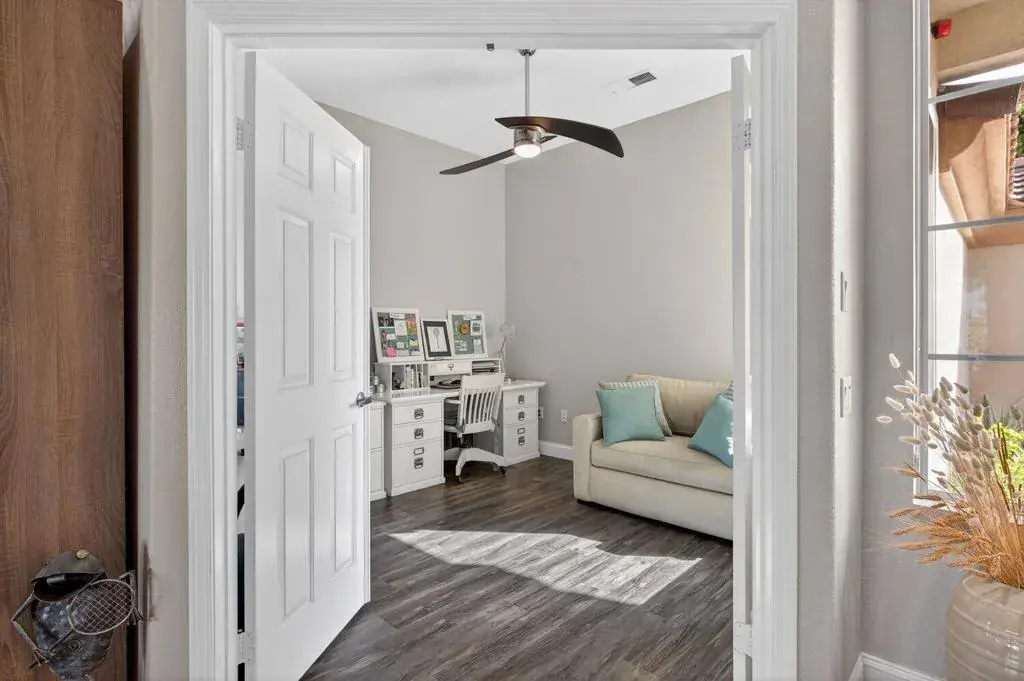 This beautifully updated 1,707 sq. ft. Merion Plan in Heritage Palms Country Club is truly a must-see! Thoughtfully remodeled and meticulously maintained, this home offers the perfect blend of comfort, style, and easy desert living. Step inside to a bright, open, extended great room filled with natural light and anchored by a cozy electric fireplace–perfect for those cool desert evenings. The remodeled chef’s kitchen (2023) is the heart of the home, featuring quartz countertops, a custom backsplash, and stainless steel LG appliances. A spacious double-door pantry adds convenience, while the counter seating creates the ideal space for friends and family to gather as you prepare your favorite meals. This popular floor plan offers two bedrooms plus a versatile den. The spacious primary suite showcases elegant beveled ceilings, a large walk-in closet with custom built-ins, and a beautifully remodeled en-suite bath complete with quartz countertops, dual sinks, a shower/tub combination, and a linen closet. Guests will appreciate their own private retreat with built-in closet storage and easy access to the updated guest bath featuring a walk-in shower and quartz countertops. The den, highlighted by double entry doors, provides flexible space for a third bedroom, home office, craft room, or cozy reading retreat. The laundry room includes a utility sink and direct access to the garage, which features epoxy flooring and additional space for a golf cart. Additional upgrades include newer dual-pane windows, laminate flooring, plantation shutters in master bedroom, ceiling fans, a new water heater installed in 2024. Step outside to a beautifully landscaped backyard with artificial turf for low-maintenance enjoyment, along with a fully landscaped front yard. Ideally located close to the clubhouse, this home offers both privacy and convenience. As a resident of Heritage Palms Country Club, you’ll enjoy resort-style amenities including an 18-hole championship golf course, fitness center, indoor and outdoor pools, tennis and pickleball courts, an active clubhouse, and a vibrant social calendar. Resort living starts here–don’t miss the opportunity to make this exceptional home your own! 🏡🌴