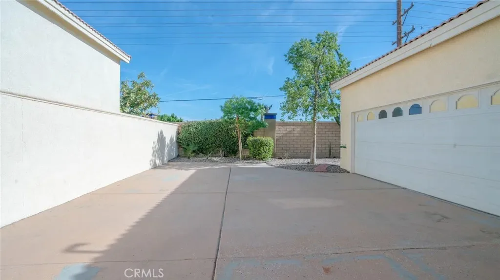 Side patio, gated driveway and room for several cars in the driveway. House is
