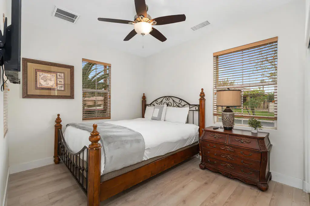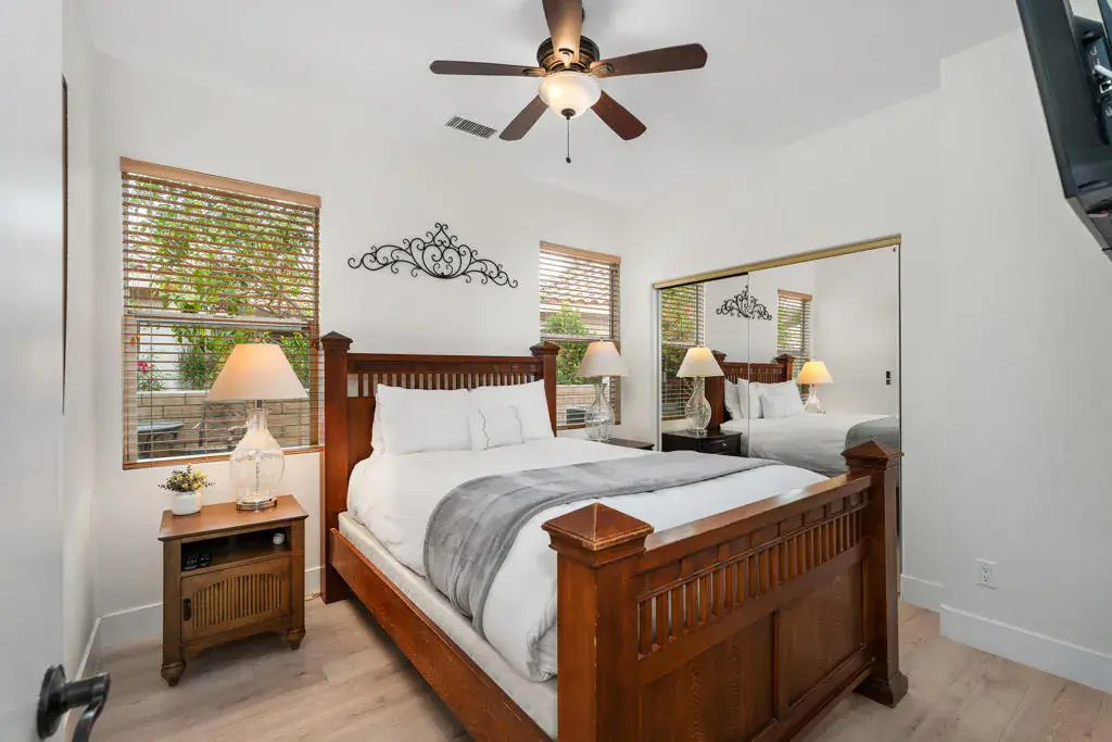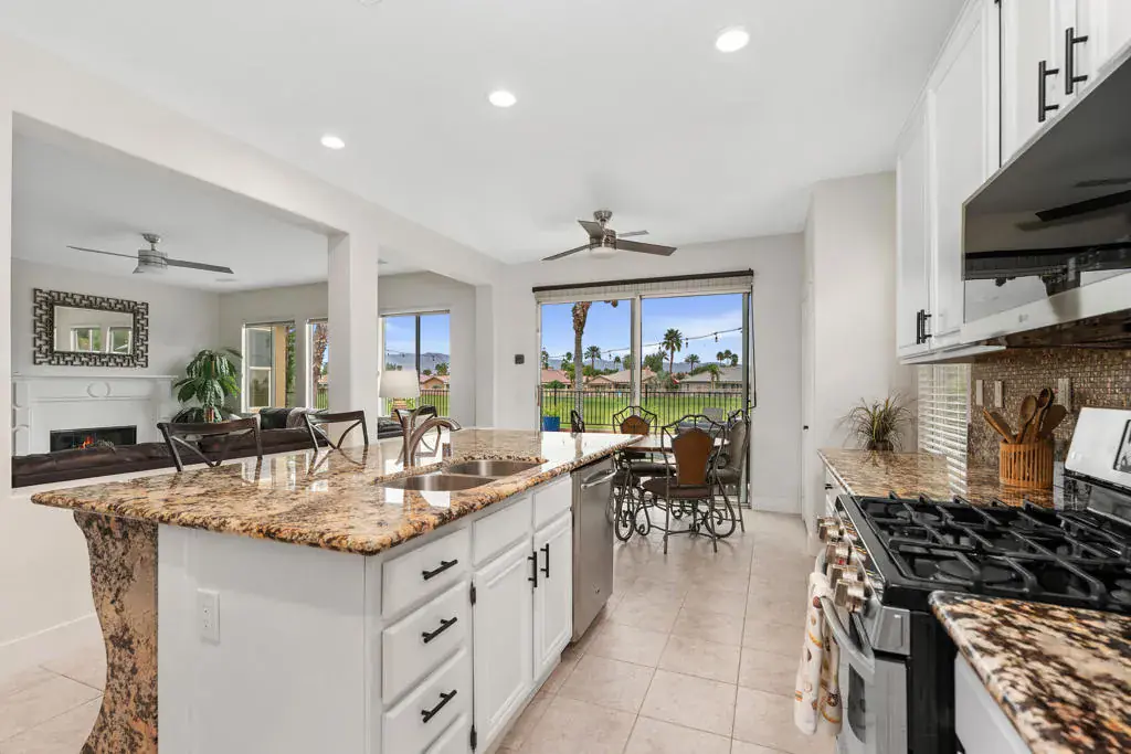 Location, views, and upgrades define this beautiful home at Indian Palms Country Club. Ideally situated with sweeping views of the Royal 2nd fairway, your own private pool and spa, and a stunning mountain backdrop, this residence offers the best of resort-style desert living. The interior is freshly painted, and the new HVAC provides comfort, efficiency, and a move-in-ready feel.The thoughtfully designed floor plan includes a private primary suite and a separate guest wing with 2 additional bedrooms and 21/2 baths, offering excellent separation and functionality. The home features a generous gourmet kitchen with golf course views, a center island, a Butler’s pantry, an indoor laundry room, an expansive great room with a fireplace, and a formal dining area ideal for entertaining. Additional highlights include a large two-car garage plus a separate golf cart garage, currently used as a bonus recreation space with a mini-split system for year-round enjoyment. Ideal for full-time living or a seasonal retreat, furnished turn-key Indian Palms is a guard-gated community offering a 27-hole championship pay-as-you-play golf course, an on-site restaurant, a boutique hotel, a fitness center, tennis, and banquet facilities.