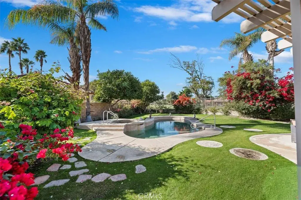Outside, relax in your own paradise with a gorgeous pool and jacuzzi, complemented by sweeping views of the lush golf course and enhanced privacy from thoughtfully placed bougainvillea. The expansive outdoor space is ideal for al fresco dining, allowing you to soak in picturesque scenery.