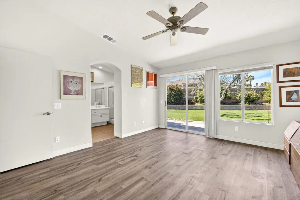 Welcome to Las Brisas II, a desirable 55+ gated community known for having one of the lowest HOA fees in the Coachella Valley.Situated on a large, beautifully landscaped pie-shaped lot, this home offers exceptional outdoor space and privacy–perfect for relaxing, entertaining, or enjoying the peaceful desert lifestyle.Inside, the home features an updated interior with modern finishes, including refreshed flooring and an upgraded kitchen designed for comfortable everyday living and easy entertaining.The spacious primary suite includes a large additional sitting area that was originally a third bedroom and could easily be converted back, creating the potential for a fourth bedroom or flexible living space such as a home office, reading retreat, or private lounge.Residents of Las Brisas II enjoy the security of a gated community and an ideal location close to shopping, golf courses, dining, and entertainment throughout the Coachella Valley.This home offers a wonderful combination of space, flexibility, and lifestyle in one of Indio’s most affordable 55+ communities.