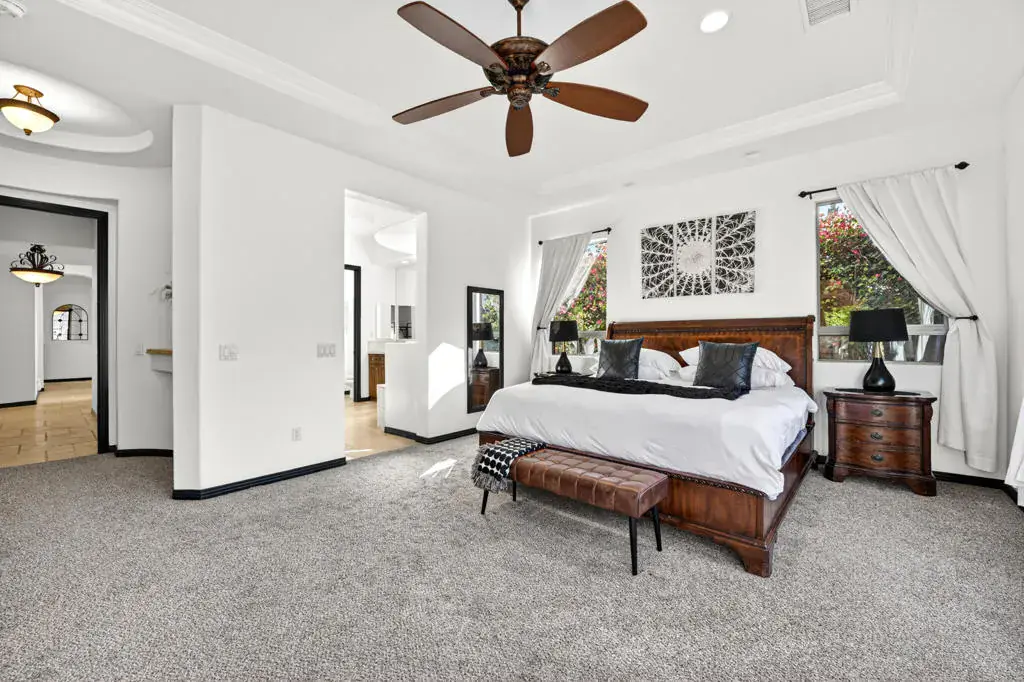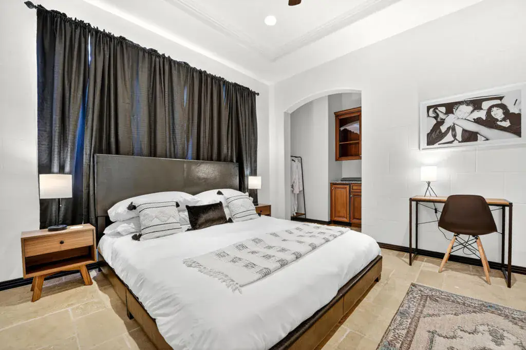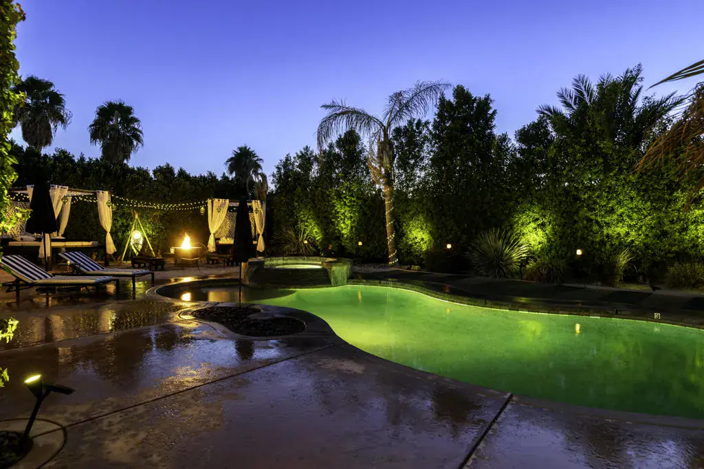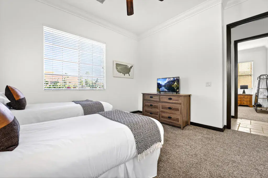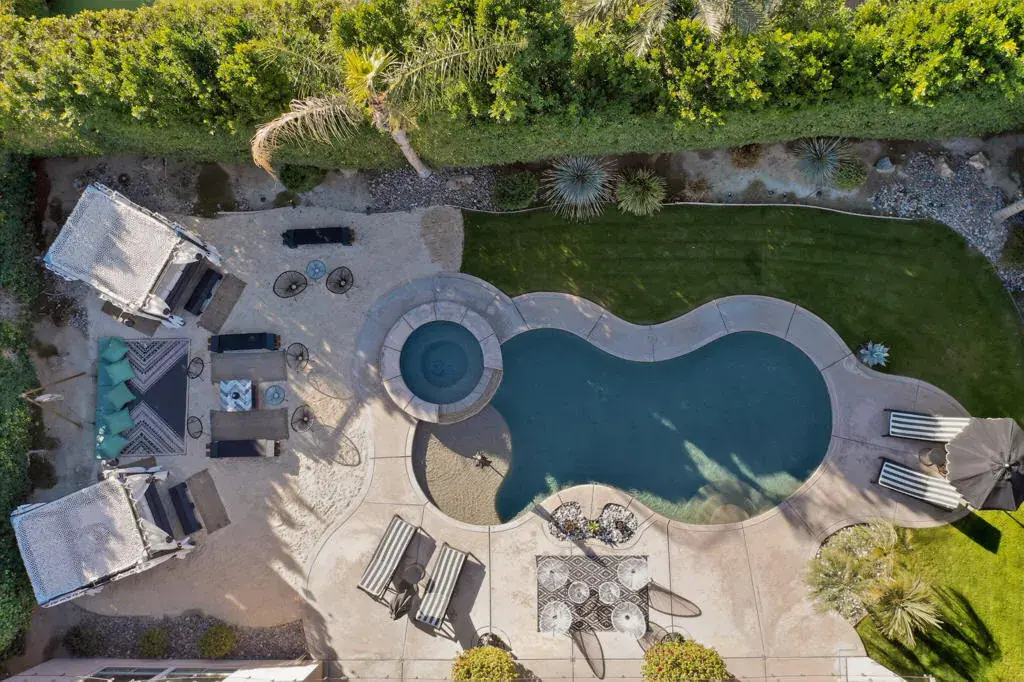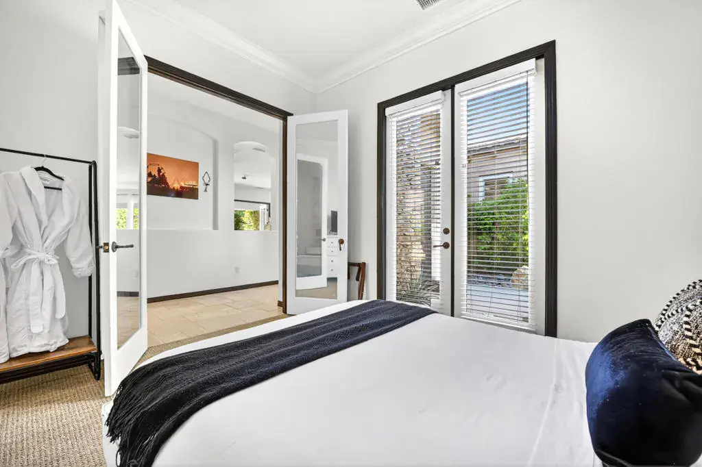 Welcome to Montage at Santa Rosa, a STR friendly development, where refined desert living meets resort-style comfort! This expansive 5-bedroom, 3.5-bath residence offers 3,308 square feet of thoughtfully designed living space, perfectly situated on an impressive 16,117 square foot lot and offered turnkey furnished–ideal for effortless personal enjoyment or immediate rental use. Designed for both everyday living and grand-scale entertaining, the open-concept layout features light-filled living spaces, soaring ceilings, and seamless indoor-outdoor flow. The chef’s kitchen anchors the home with a large marble LED island with white wood cabinets and Thermador panel dishwasher, generous cabinetry, and ample prep space–perfect for hosting gatherings or accommodating guests. Step outside to a private backyard retreat reminiscent of a boutique resort. The beautifully landscaped grounds showcase a sparkling pool and spa, multiple lounge and entertaining areas, and ample space to relax under the desert sky–creating a true vacation-style experience year-round. With five well-appointed bedrooms, the home offers exceptional flexibility for guests, multi-generational living, or work-from-home needs. Located close to world-class golf, dining, shopping, and festival venues, this property is exceptionally well-suited as a primary residence, luxury vacation home, or income-producing short-term rental investment. Additional updates include a pool heater and motor replaced in April 2025, HVAC units replaced in July 2025, the interior of the house, garage door and trim painted in August 2024. Space, style, and STR flexibility–this is desert living at its best.