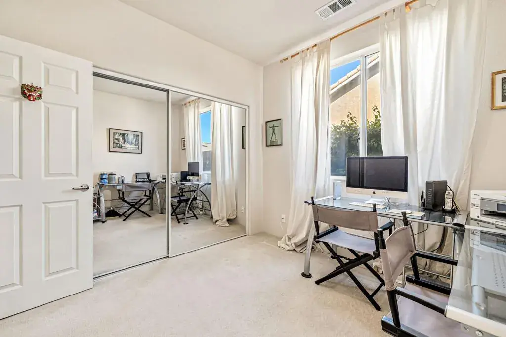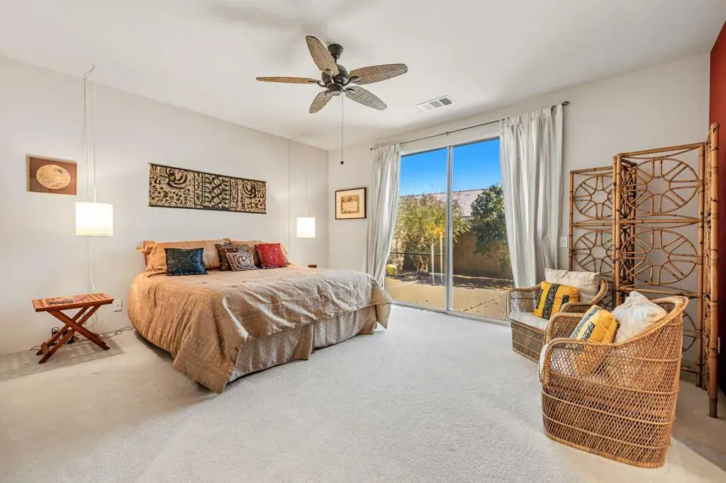 Welcome to this charming cul-de-sac residence, proudly offered by the original owners and ideally situated on a desirable corner lot. This thoughtfully designed home features four bedrooms, including an extra-large, versatile room perfect for a home office, media room, or guest suite. Sunscreens on the windows enhance energy efficiency and year-round comfort. Step into a tranquil backyard retreat showcasing attractive hardscape, mature citrus trees, and a soothing fountain–ideal for relaxing or entertaining. Extra drainage has been added to the front and backyards.Centrally located in the heart of the valley, this home is just minutes from HWY 111, shopping, and fine dining, with easy access to Indian Wells, the BNP Paribas Open Tennis Garden, and multiple world-class golf courses.With no HOA dues and short-term rentals currently allowed, this property offers excellent flexibility as a primary residence, second home, or investment opportunity. Don’t miss the chance to own a home that perfectly blends comfort, location, and income potential.