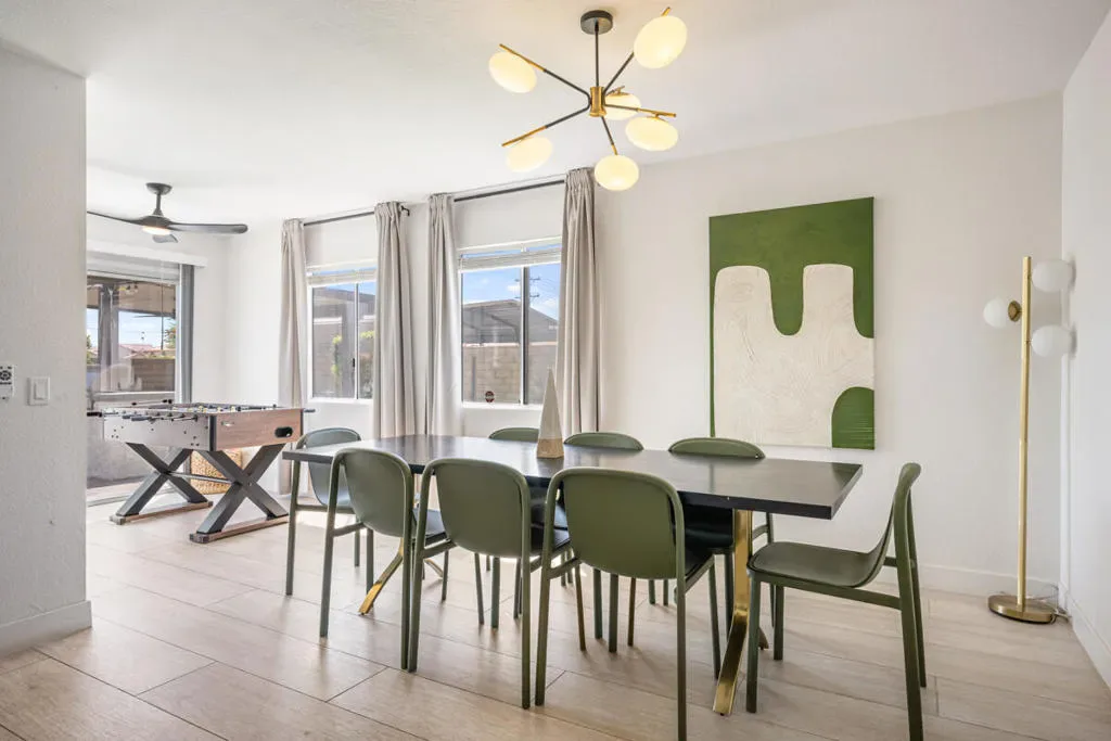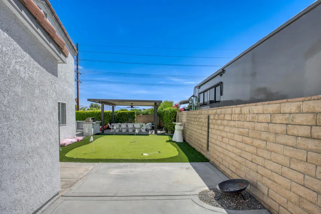 Welcome to a rarely available 5-bedroom, 4-bath home with no HOA! This property offers a luxurious interior and is currently a highly desirable short-term rental with many future bookings that can transfer to the new owner–making it the perfect blend of investment and personal getaway. Enjoy the resort-style backyard with a newly re-plastered sparkling pool & spa, built-in BBQ island, covered dining space, putting green, and incredible mountain views. Inside, the light and bright open floorplan features completely remodeled upstairs and downstairs bathrooms with custom tile showers, new vanities and smart toilets! The spacious kitchen boasts granite counters, two-toned cabinetry with brass hardware, and new stainless steel appliances, opening to the dining room and backyard for seamless entertaining. The inviting living room features a cozy fireplace, while a main-level bedroom with en suite bath provides flexibility for guests. Upstairs, discover four additional bedrooms, including a spacious primary suite with dual vanities and a high-end hotel feel. With updated bathrooms throughout, RV parking, and an attached 2-car garage, this property is move-in ready. Whether for personal use or as a lucrative STR, this Indio home captures the best of desert living.
