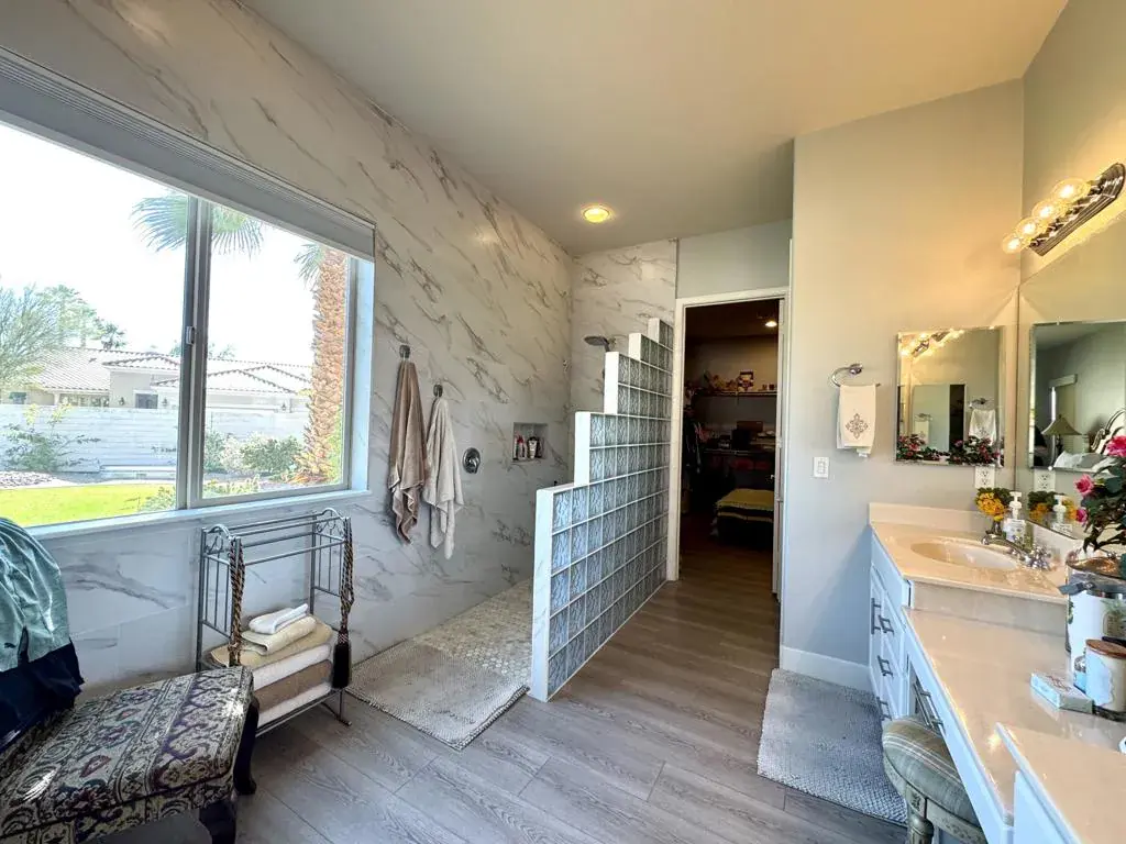 REDUCED to SELL NOW! COMPLETELY REMODELED This coveted San Miguel Model is being offered FURNISHED. It was recently PAINTED and NEW 6’baseboard added. This MODEL boasts spacious areas through out the home and is located at end of private Cul-D-Sac on premium 15000+ sq.ft. lot. Features formal dining and living rooms area, plus double door Den/office. It also has a separate Family/TV Room and breakfast nook which open to beautifully REMODELED KITCHEN w/custom SOLID Slab Granite Counters and subway tile backsplash. Kitchen is fitted w/quality high end stainless steel appliances, custom hood, 5 burner gas range, FARMERS SINK, newly painted white cabinets w/brushed nickel hardware, plus replaced plumbing fixtures and disposal. The breakfast bar and a center island lend themselves to the perfect setting to entertain. Amongst other things, it also includes a TOP of the line WATER PURIFIER producing alkaline balanced water plus PURIFIER UNIT in garage for entire home. The well appointed master bedroom suite affords a sitting area for those peaceful quality moments. Bathroom has double vanity, the shower remodeled using 8×8 GLASS BLOCK and beach entry w/mosaic shower pan and porcelain tile from floor to ceiling PLUS custom upgraded fixtures. Also included was the NEW 8’x 48” quality laminate floors thru-out. The extra large walk in closet provides plenty of storage. The guest casita (2nd bedroom) is large enough for King Size Bed, end tables, chest of drawers and sitting area. The casita bathroom was also REMODELED w/walk in shower, including mosaic shower pan, custom rain shower head, fixtures & custom glass and has private door leading to courtyard. The NEW beautiful LOW MAINTAIN custom landscape includes a DEEP ROCK RIVER using Large Boulder and smaller stone. In addition a NEW custom sidewalk w/WATER FEATURE many beautiful miniature slow growing palms and desert plants to give it the curve appeal. Backyard has PUTTING GREEN, additional turf and 12 ft. CUSTOM PAVERS in a 12′ circle PLUMBED FOR GAS FIREPIT. Also has movable quality BBQ Island. Home is in beautiful golf course gated community w/Tennis, pickle-ball, bocci ball, State of the word fitness centers, indoor walking areas, billiards and so much more. Search www.SCSHCA.Com for ALL Amenities. A MUST SEE TO APPRECIATE; Make your appointment NOW!More info. go to www.SCSHCA.Com
