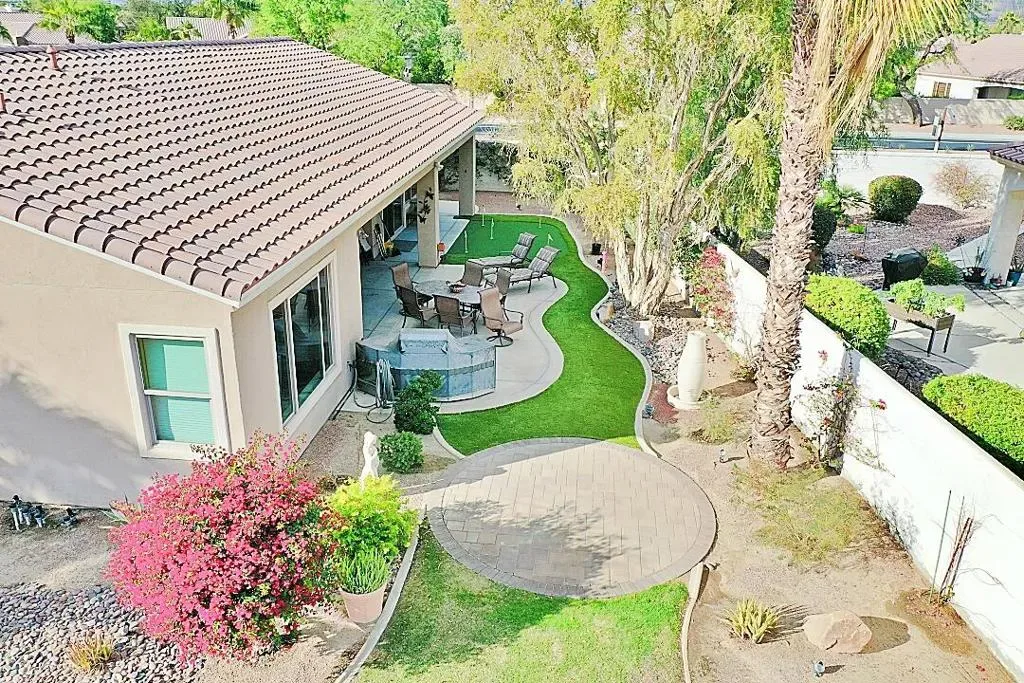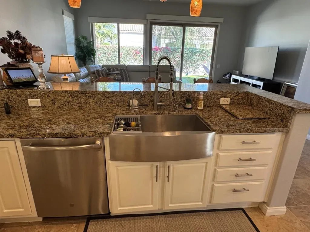 LONG TERM or SEASONAL RENTAL. (TEXT for seasonal rates.) COMPLETELY REMODELED This coveted San Miguel Model is being offered FURNISHED. It was recently PAINTED, NEW flooring, 6’baseboard added, completely remodeled baths and kitchen. Located at end of Cul-D-Sac on premium 15000+ sq.ft. lot. Features formal dining and living rooms area, plus double door Den/office. It also has a separate Family/TV Room and breakfast nook which open to beautifully REMODELED KITCHEN w/custom SOLID Slab Granite Counters and subway tile backsplash. Kitchen is fitted w/quality high end stainless steel appliances, custom hood, 5 burner gas range, FARMERS SINK, newly painted white cabinets w/brushed nickel hardware, plus replaced plumbing fixtures and disposal. The breakfast bar and a center island lend themselves to the perfect setting to entertain. Amongst other things, it also includes a TOP of the line WATER PURIFIER producing alkaline balanced water plus PURIFIER UNIT in garage for entire home. The well appointed master bedroom suite affords a sitting area for those peaceful quality moments. Bathroom has double vanity, the shower remodeled using 8×8 GLASS BLOCK and beach entry w/mosaic shower pan and porcelain tile from floor to ceiling PLUS custom upgraded fixtures. Also included was the NEW 8’x 48” quality laminate floors thru-out. The extra large walk in closet provides plenty of storage. The guest casita (2nd bedroom) is large enough for King Size Bed, end tables, chest of drawers and sitting area. The casita bathroom was also REMODELED w/walk in shower, including mosaic shower pan, custom rain shower head, fixtures & custom glass and has private door leading to courtyard. The NEW beautiful LOW MAINTAIN custom landscape includes a DEEP ROCK RIVER using Large Boulder and smaller stone. In addition a NEW custom sidewalk w/WATER FEATURE many beautiful miniature slow growing palms and desert plants to give it the curve appeal. Backyard has PUTTING GREEN, additional turf and 12 ft. CUSTOM PAVERS in a 12′ circle PLUMBED FOR GAS FIREPIT. Also has movable quality BBQ Island. Home is in beautiful golf course gated community w/Tennis, pickle-ball, bocci ball, State of the word fitness centers, indoor walking areas, billiards, many social clubs with a real community feel and so much more. Close to many golf courses, restaurants, stores, shopping, etc. Search www.SCSHCA.Com for ALL Amenities. A MUST SEE TO APPRECIATE; Make your appointment NO