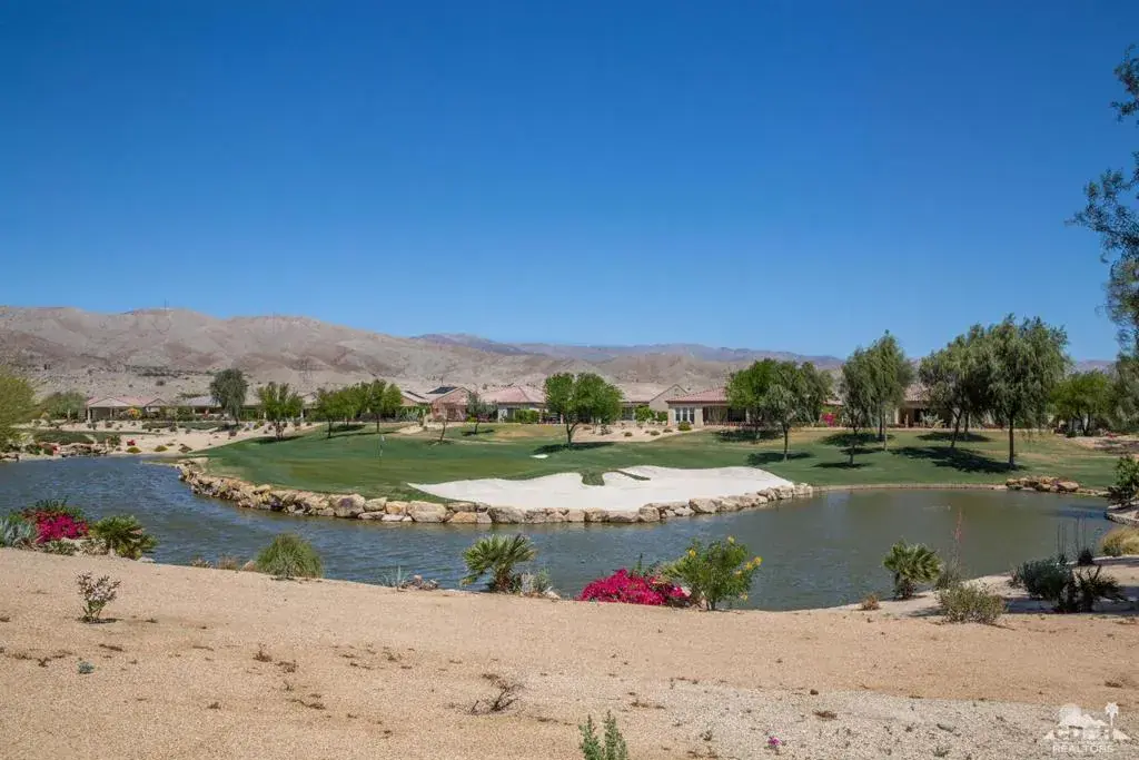 One-of-a-kind Embark Model on the golf course! ANNUAL-1 Year LEASE. Beautiful View lot overlooking 18th Green (North Course) & Lake! Step over the back wall to the Santa Rosa pool, gym & pickle ball courts. Close to golf and Pro Shop. Turnkey furnished, including kitchen essentials, long-term (1 yr) lease,. Custom granite counters thru-out, Custom paint, Crown molding, Engineered wood flooring in living areas, upgraded tile & upgraded carpet in bedrooms. Separate Golf Cart garage. Kitchen upgrades include stone backsplash, pullout shelving, recessed & pendulum lights, bar & overhead cabinet, custom pantry, pullout trash bins. Patio amenities are Alumawood covers, BBQ, fire pit, artificial grass, fans & night time lighting. This is a gorgeous place to call home. Sun City Shadow Hills is a 55+ community, located minutes off the I-10 freeway with two clubhouses, 36 holes of golf, state of the art fitness center, indoor and outdoor pools, restaurants, cafe, tennis courts, pickle and bocce ball, billiard room, activities and clubs to join. Leased thru April 11, 2026. Available for a one year lease at $3000 per/month as of 4-13-26.