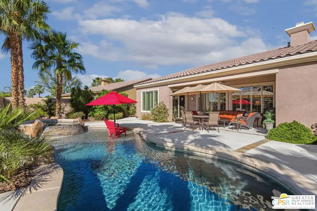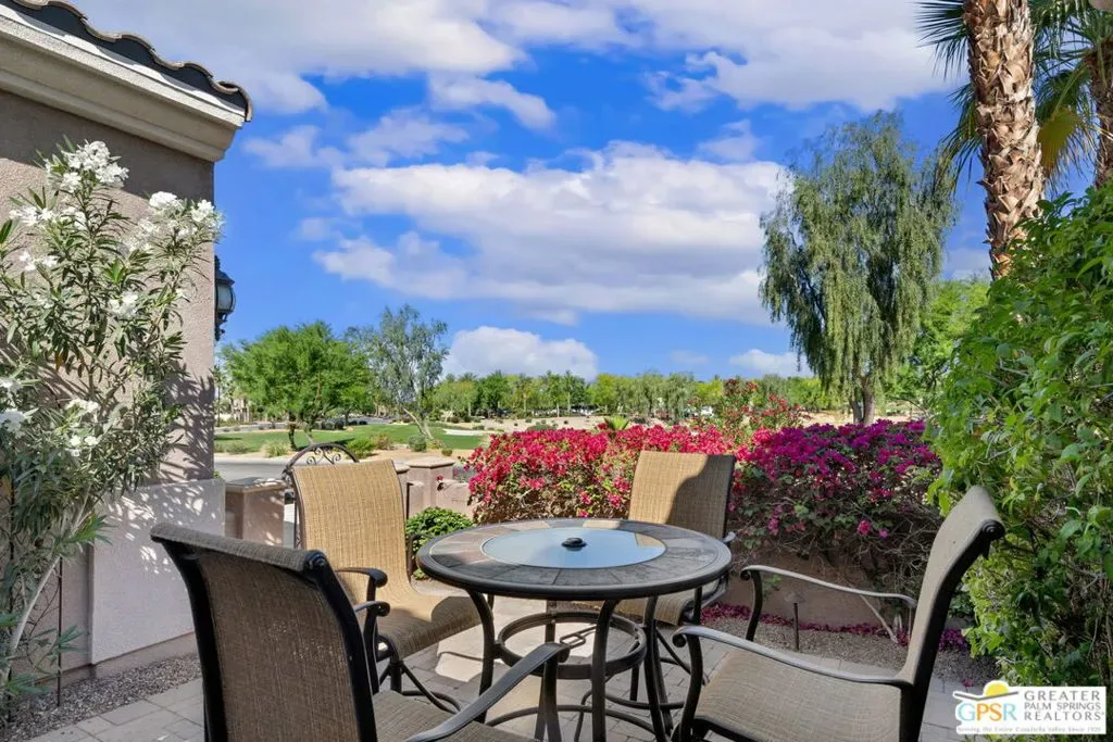 Desert resort living at its finest! This impeccably maintained, move-in ready home offers the perfect combination of comfort, style, and privacy. Featuring 2 bedrooms and 2.5 bathrooms, this Dorado model residence is ideal as a full-time home or a luxurious seasonal retreat. Step outside to your own private backyard oasis, complete with a resort-style pool and spa, a cozy fire pit, and inviting spaces designed for both relaxation and entertaining. The front courtyard is truly special offering gorgeous golf course views and stunning sunset vistas, making it the perfect place to enjoy morning coffee or unwind in the evening with a glass of wine. Inside, the home is light, bright, and beautifully cared for, with a spacious layout and a warm, inviting living room with a fireplace perfect for cooler desert nights.For those who appreciate golf course living, this home delivers the best of both worlds enjoy scenic views from the front courtyard while maintaining privacy in your backyard retreat. A rare opportunity to own a turnkey desert escape, schedule your private showing today!