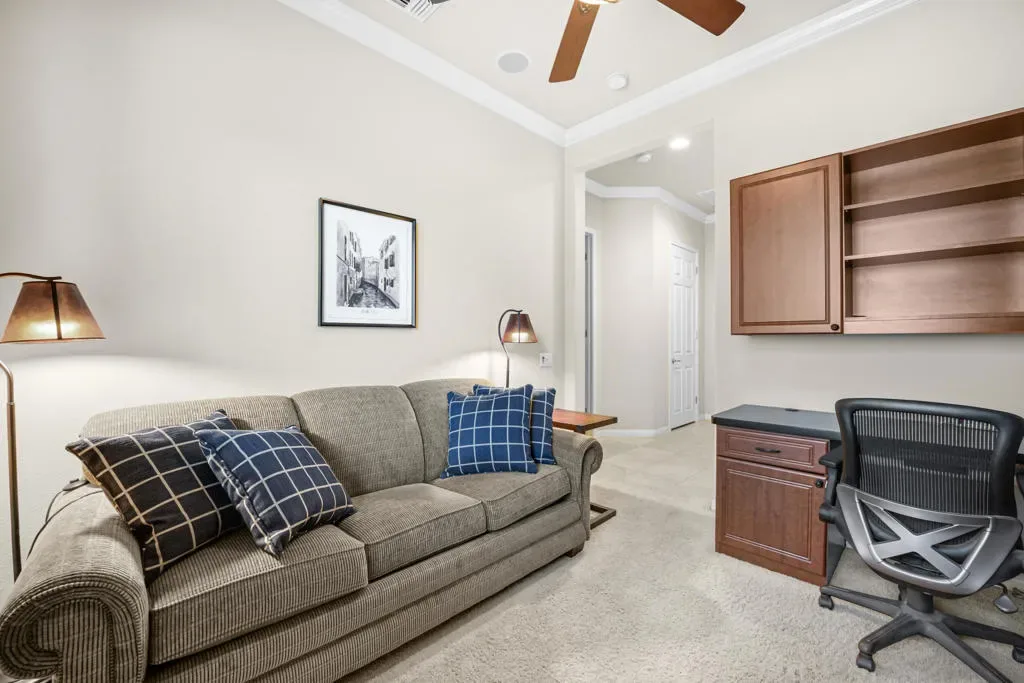 Welcome to your dream retreat in the prestigious Sun City Shadow Hills, a vibrant 55+ community. This stunning 3-bedroom including private casita, 3-bathroom home offers the perfect blend of luxury and comfort, ideal for a seasonal lease. The den is set up for additional sleepers with a sofa bed and a workdesk. As you step inside, you’ll be greeted by a spacious open floor plan, beautifully furnished and ready for you to start enjoying the desert lifestyle. Theliving area features a cozy fireplace, perfect for relaxing evenings, while the kitchen is equipped with brand new modern appliances and ample counter spacefor all your culinary adventures. Each bedroom is a private oasis, offering comfort and tranquility. Step outside to your backyard with a built in BBQ, whereyou can soak up the sun or entertain guests amidst the stunning golf course overlooking the third fairway. As a resident of Sun City Shadow Hills, you’ll haveaccess to a wealth of amenities, including golf courses, swimming pools, fitness centers, and a bustling clubhouse with a variety of social activities. Don’tmiss the opportunity to experience resort-style living in this exceptional community. Rented Jan-March 2027.