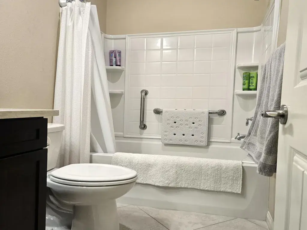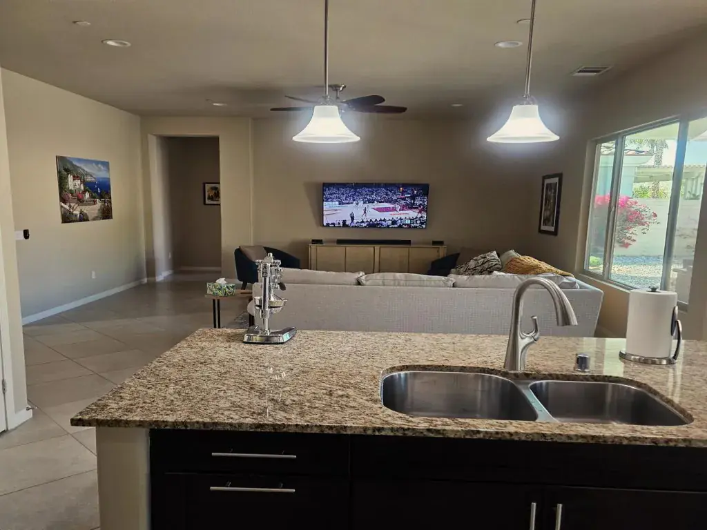 Enjoy all the comforts of home… 3 bedrooms, 2 bath Hospitality Model with a Open & Inviting floor plan, Spacious Great Room with a 65 Inch TV off Kitchen and Dining area, with slider door to access private North facing yard. Lovely Kitchen with Island, Granite Counter Tops. Spacious Primary Suite with King Bed, 55 Inch TV. Primary Bath with Dual sink vanity, separate tub & shower, walk in closet. Guest Bedroom with Queen sized bed, bath adjacent off hallway. 3rd Bedroom with Queen Bed & desk. Private yard with covered patio. Laundry room, 2 car attached garage. Phase 3 location, close to Santa Rosa Clubhouse, Shadows Restaurant, walking trails, golf, & Pickle Ball & Tennis! Close to shopping, dining, entertainment. Active Del Webb Lifestyle offers golf, restaurant, bistros, 2 clubhouses, indoor and outdoor pools/spas, Bocce, activities, concerts, performing arts, crafts, social events, Billiards, Library. Shopping, Dining, Entertainment, Acrissure Arena all nearby.