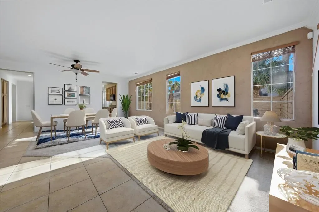 Step into a home that offers the space, layout, and lifestyle today’s buyers are truly looking for–all within one of Indio’s most sought-after gated communities with 24-hour security.This expansive 5-bedroom, 4-bathroom residence offers a highly desirable layout designed for flexibility and real-life functionality. The main level features a private primary suite with its own bathroom, along with two additional bedrooms and the convenience of three bathrooms downstairs–an ideal setup for multi-generational living, guests, or a dedicated work-from-home environment. Upstairs, two generously sized bedrooms and a full bathroom create a separate retreat–enhanced by beautiful mountain views that add a sense of calm and elevation to your everyday living experience.The backyard presents a great opportunity for the next owner to design and create their own private outdoor retreat–whether that means enhancing the existing space, adding personal touches, or maximizing its full potential over time.This move-in ready home offers immediate comfort while also presenting a valuable opportunity for the next owner to add their own personal touches and further elevate the space to match their vision.Designed for the way you live today, with the space, layout, and comfort to grow into tomorrow–this is a home that truly adapts to you.