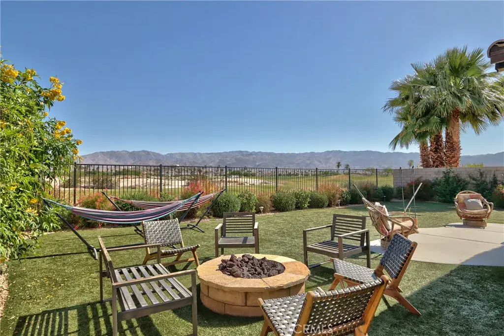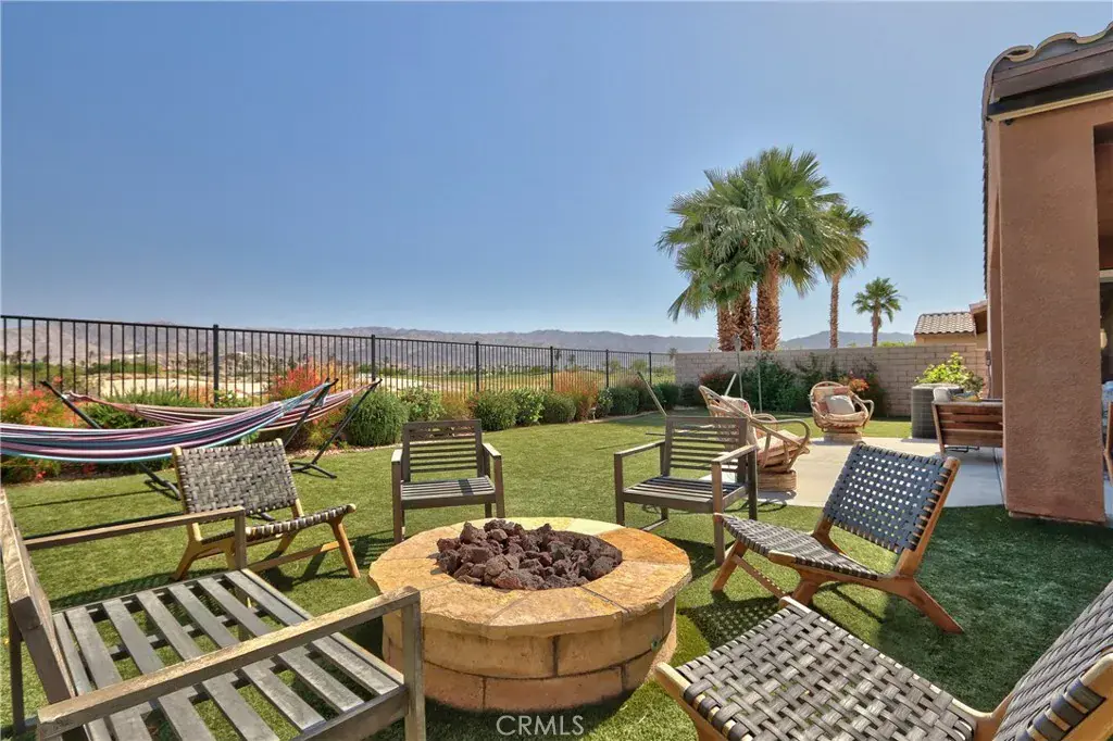 PRICE DROP!!!!!!!!!! ANOTHER 10K BETTER HURRY!!!!!!!!!!!WELCOME TO YOUR NEW HOME IN THE UPSCALE PRIVATE GATED COMMUNITY OF TERRA LAGO. THIS IS A GREAT OPPORTUNITY FOR YOU TO OWN A TURN KEY HOME WHERE ATTENTION TO DETAIL IS EVIDENT. BEAUTIFUL AND SPACIOUS COURTYARD LEADING UP TO YOUR FRONTDOOR.THE HOME IS LOCATED ON THE GOLF COURSE WITH AWESOME VIEWS OF THE COURSE AND MOUNTAINS.THIS HOME BOASTS 4 BEDROOMS, 3 FULL BATHS IN 2472 SQ FEET OF PURE LUXURY. THE KITCHEN HAS CUSTOM CABINETS, GRANITE COUNTER TOPS AND A HUGE CENTER ISLAND BAR.THE BEAUTIFUL LARGE PRIMARY BEDROOM HAS HUGE WALK-IN CLOSET THAT IS READY FOR YOUR BELONGINGS, AWESOME VIEWS OF THE MOUNTAINS AND FRENCH DOORS GOING OUT TO THE PATIO FOR YOUR MORNING COFFEE. THERE IS A DUAL UNIT AC WITH 3 ZONES AND A BUILT IN SURGE PROTECTOR. THE HOME COMES WITH YOUR OWN CUSTOM HIGH-END HOME THEATER ROOM ANCHORS THE SPACIOUS SINGLE LEVEL FLOOR PLAN. THERE IS AN ATTACHED 3 CAR TANDEM GARAGE WITH IT’S OWN TESLA CHARGING STATION. THE BACK YARD HAS A COVERED PATIO LOOKING OUT OVER THE GOLF COURSE WITH MOUNTAIN VIEWS WHILE YOU ENJOY YOUR NIGHT IN FRONT OF THE FIRE PIT. THIS HOME IS PRICED TO SELL FAST SO DON’T HESITATE OR YOU WILL MISS OUT!!!!!!!! LOW STR FEES AND NO RESTRICTIONS. DUES INCLUDE GUARDED GATES, 2 RESIDENT GATES, HIGH SPEED INTERNET AND DIRECT TV. YOU ALSO ENJOY 24 HOUR GATED ACCESS,LAKE ACCESS,CLUBHOUSE AND POOL ACCESS. ELECTRICTY IS THRU IID FLAT RATE NON-TIERED RATE. EFFICIENT LANDSCAPING WITH ARTIFICIAL TURF IN BACK YARD. PROPERTY IS LOCATED 30 MINUTES FROM JOSHUA TREE NATIONAL PARK.