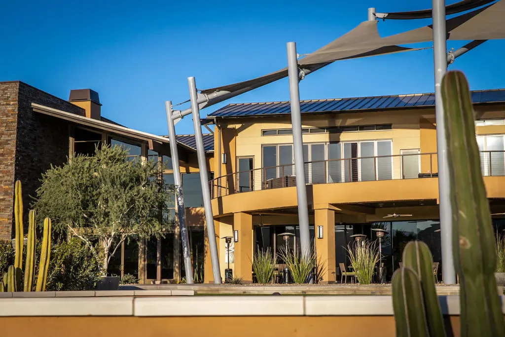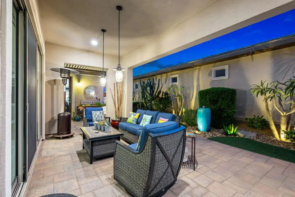 An exquisite Trilogy Polo Club sanctuary, this Immaginare single-family stunner blends luxury and livability with a resort-style, heated PebbleTec pool and spa, an elegant saltwater system, and a beautifully curated 2-bedroom, 2.5-bath layout with a sophisticated den/office featuring an accent wall of wood and a custom floor-to-ceiling lighted bookcase. A wrought-iron privacy gate ushers you into a dramatic foyer with a custom ceiling, leading to an expansive great room anchored by a stacked-stone fireplace and bespoke illuminated shelving, complemented by plantation shutters, automatic privacy shades, crown molding, and rolling glass walls that dissolve the boundary between indoors and the lush greenbelt beyond. The gourmet kitchen elevates every culinary moment with quartz countertops, espresso cabinetry with custom pulls, stainless appliances including a GE Monogram 42” built-in refrigerator and GE Cafe package with beverage cooler, a striking tile backsplash, gas cooktop with custom hood, and an entertainer’s island with bar seating. High-grade ceramic plank flooring, upgraded ceiling fans, paver driveway, and enhanced desert landscaping with fountains and artificial turf add refinement at every turn, while the primary retreat indulges with dual vanities, a soaking tub, floor-to-ceiling tiled shower, and a Closet World system. A true rarity, the 3-car garage features epoxy floors, storage racking, and split A/C in both bays, and the expanded paver patio with metal sunshade creates an outdoor haven perfect for unwinding beside the cascading spa. With an Eco water softening system and kitchen reverse osmosis completing the package, this home delivers an unparalleled blend of sophistication, comfort, and resort-style living. Membership transfer fee is $3000.00 at time of purchase by Buyer versus Standard membership fee of $20,000.00.