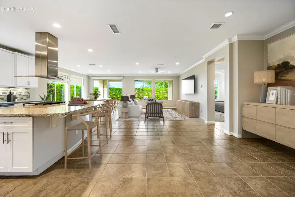 Priced to SELL, Opportunity awaits. Welcome to Trilogy Polo Club. This light & airy Refresh model features 1927 Sq. Ft. with 3BR/2BA This home is a SHOW STOPPER. Upgrades Galore, including unique granite slab counters and upgraded kitchen cabinets with loads of storage and soft close doors & drawers, warm tile floors with high baseboards, crown molding, designer ceiling fans, LED lighting, shimmery, sleek custom window treatments and rich plantation shutters and much more. The popular floor plan has no wasted space. The open great room floor plan has nice bedroom separation between primary Suite and Guest Bedrooms. The Smart Space off the entry features desk and plenty of storage cabinets. The large primary suite features a dual sink vanity with large custom tiled shower and large walk-in closet. The professionally landscaped outdoor living space with low maintenance desertscape & turf design, lighting and fountain. This home is an end unit with no rooftops behind you. come experience The Trilogy Life Today! HOA FEES INCLUDE: Front yard maintenance, security-gate, maintenance of trails/common areas and access to ‘Chess’ park, bocce ball and putting green. *Social ‘Clubhouse’ Membership Optional: Buyer to pay for one-time $3,000.00