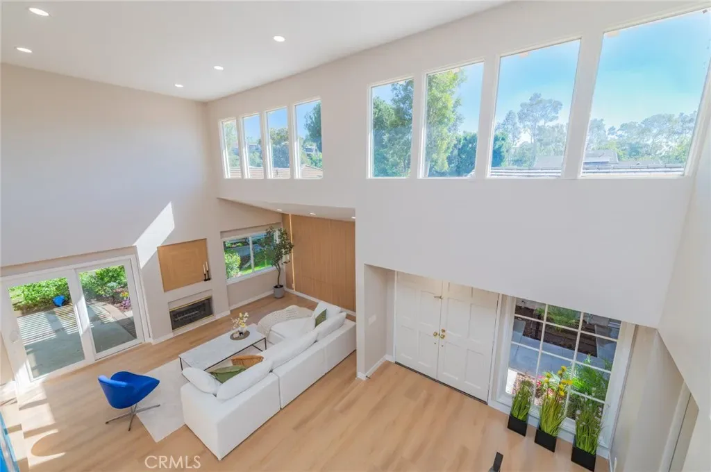 Stunning fully remodeled home in the prestigious Turtle Rock community of Irvine. Thoughtfully redesigned with a modern aesthetic, this light-filled residence showcases a dramatic high-ceiling living room and an eye-catching glass staircase that creates an immediate sense of style and openness.