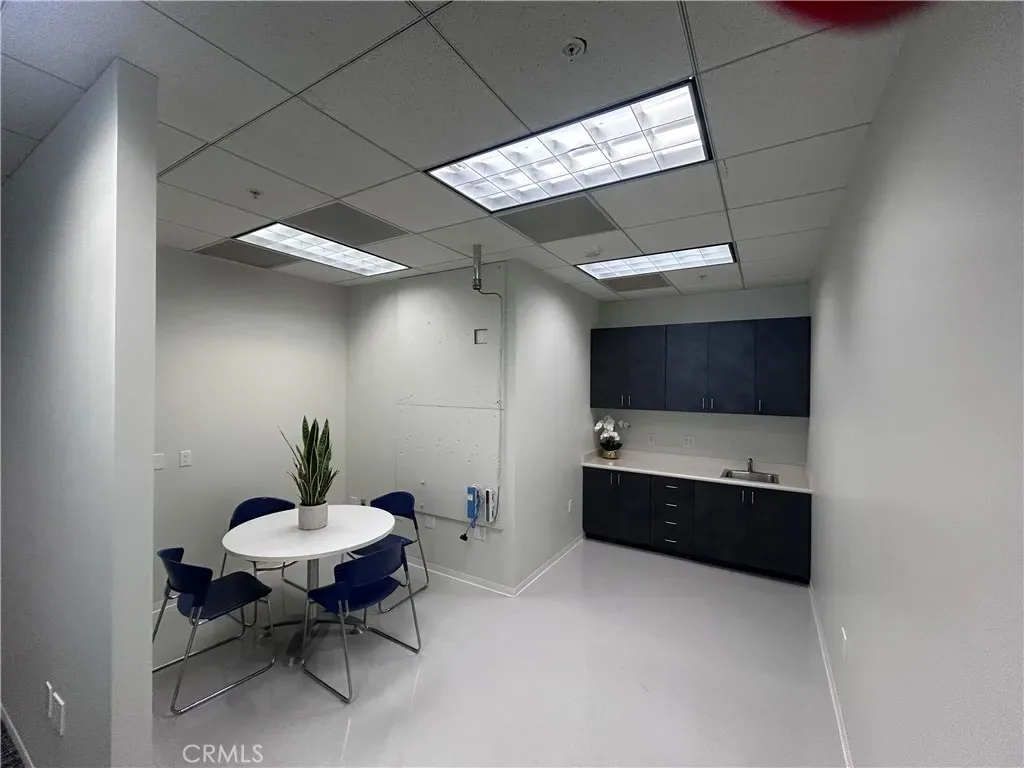 Suite 320: Furnished suite – reception area, conference room, large open area, open kitchen, and IT board.