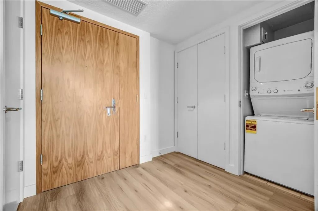 In-unit washer and dryer, plus water, gas, trash and basic internet access is included in the lease. The home also includes extra private storage and side-by-side parking in a secure garage.