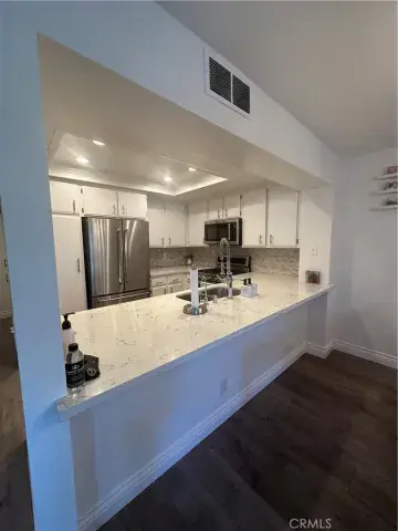 Corner, light and bright upstairs unit with vaulted ceilings in a prime Woodbridge location directly across from Woodbridge High School and Mark Daly Athletic Field. This well-maintained 2-bedroom, 1.25-bath home features new vinyl plank flooring throughout, new appliances, and double-paned sound-reducing windows. The main bathroom includes a vanity, sink, and shower/tub combination, while the primary bedroom offers a private sink and vanity area plus a spacious walk-in closet.