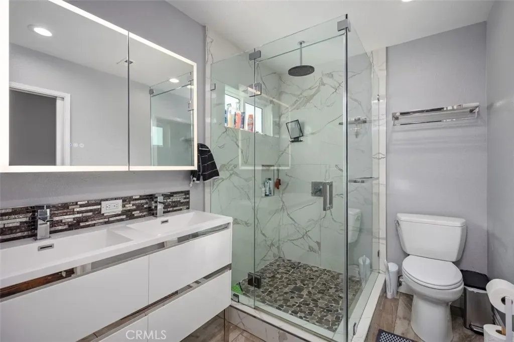 Fully renovated from top to bottom, this home features three spacious upstairs bedrooms, 2.5 upgraded baths, and a convenient two-car attached garage. The thoughtfully redesigned interior includes an expanded downstairs living area, a stunning modern kitchen with top-of-the-line appliances, custom cabinetry, built-in closets, surround sound, a newer air conditioner, and premium finishes throughout—every detail has been carefully considered.