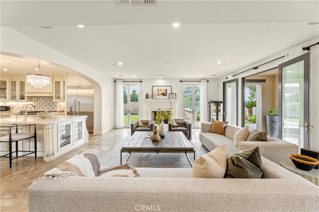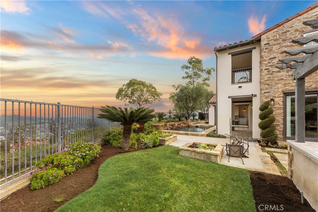Sited at the end of a quiet cul-de-sac behind the prestigious gates of The Summit at Turtle Ridge, 21 Sylvan offers one of the community’s most coveted settings. Positioned atop a rarely available, ultra-private pie-shaped lot spanning more than 10,000 square feet, the home captures sweeping hillside and panoramic city light views with breathtaking sunset skies visible across the entire back of the residence, including from the primary suite’s private balcony. Nearly 4,000 square feet of recently upgraded interior living space unfolds in a highly desirable floor plan featuring five bedrooms, including a main-level bedroom with a full bath, a gated driveway, and a true wraparound backyard that creates multiple outdoor zones for dining, play, and relaxing in total privacy. The primary suite is a standout, offering a generous retreat that functions as an office or flex space, plus a spa-like bath with dual vanities, a large walk-in shower, a separate walk-in wardrobe room, a fireplace, and view windows framing the hillside scenery. At the heart of the home, a professional-grade kitchen features chef’s appliances, custom cabinetry, and imported Italian stone countertops, opening seamlessly to spacious living and dining areas designed for everyday comfort and effortless entertaining. The exterior is a resort-style sanctuary, featuring a sparkling pool and a fully equipped outdoor kitchen with a built-in BBQ area and covered loggia for alfresco dining. Multiple fire scenes enhance the ambiance, including a dedicated fire pit viewing area and another fireplace built into a covered poolside lounge. Conveniently located near award-winning Vista Verde Elementary, TVT, and University High, residents also enjoy resort-style community amenities including a clubhouse, fitness center, theater room, pools, and tot lots. Homes with this exceptional combination of privacy, panoramic views, expansive lot size, and five-bedroom functionality are seldom available in Turtle Ridge.