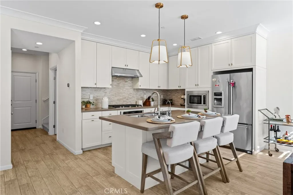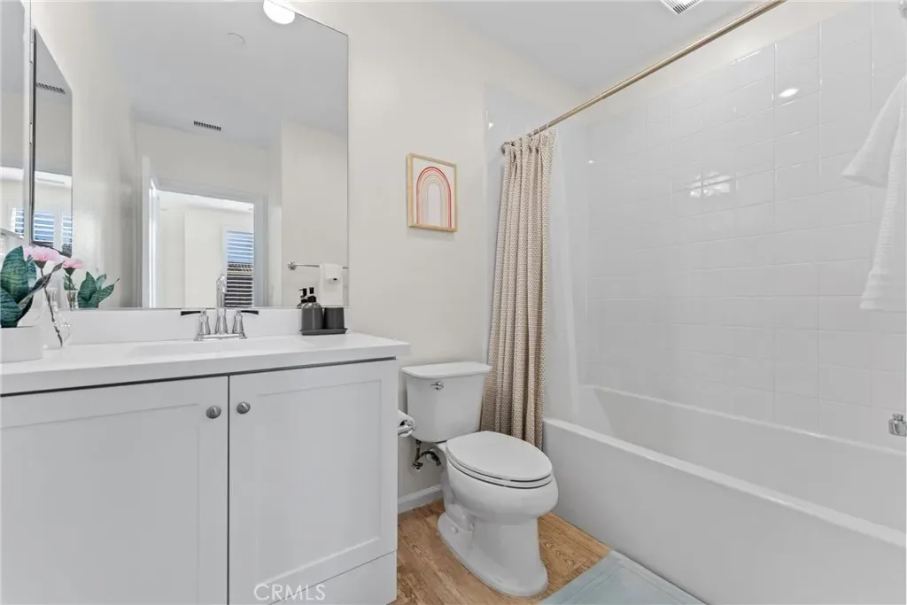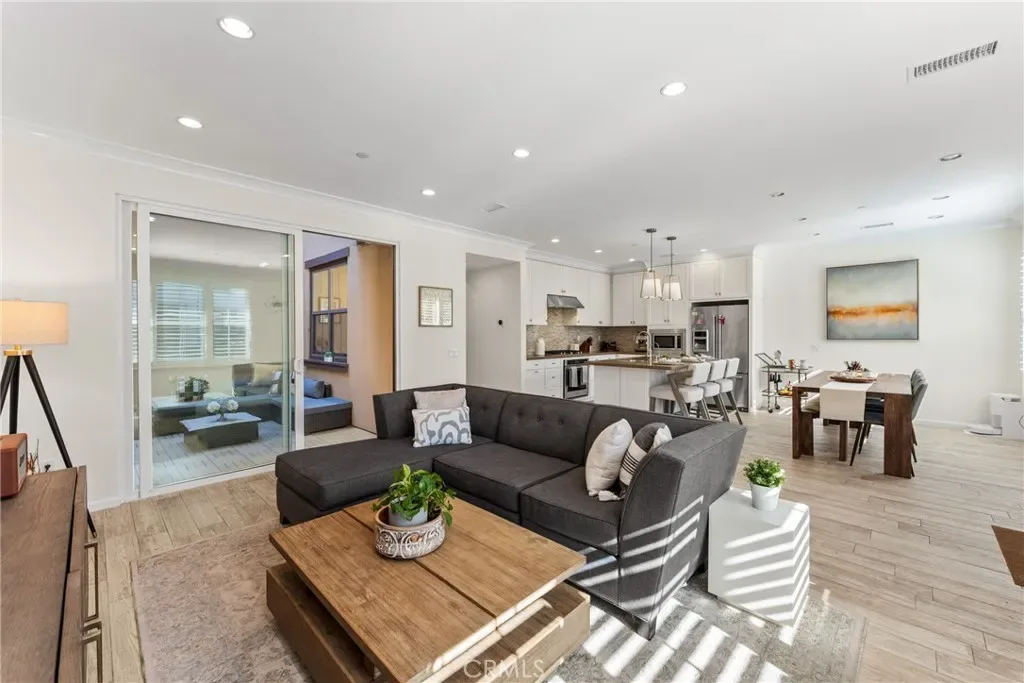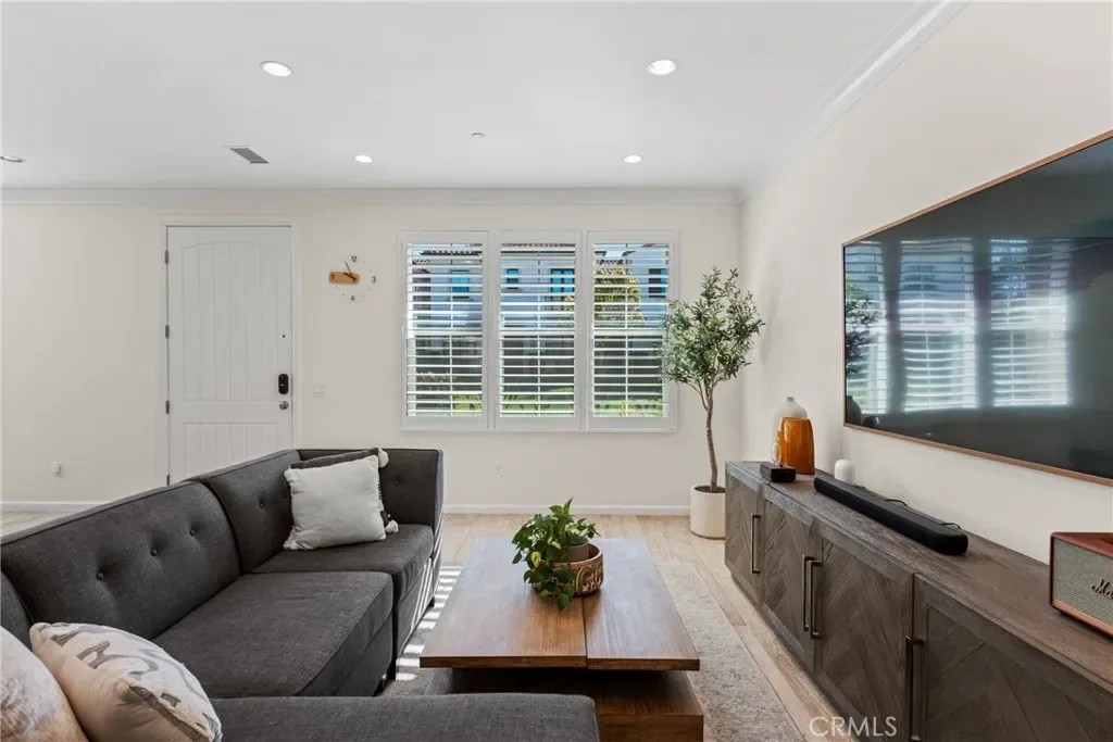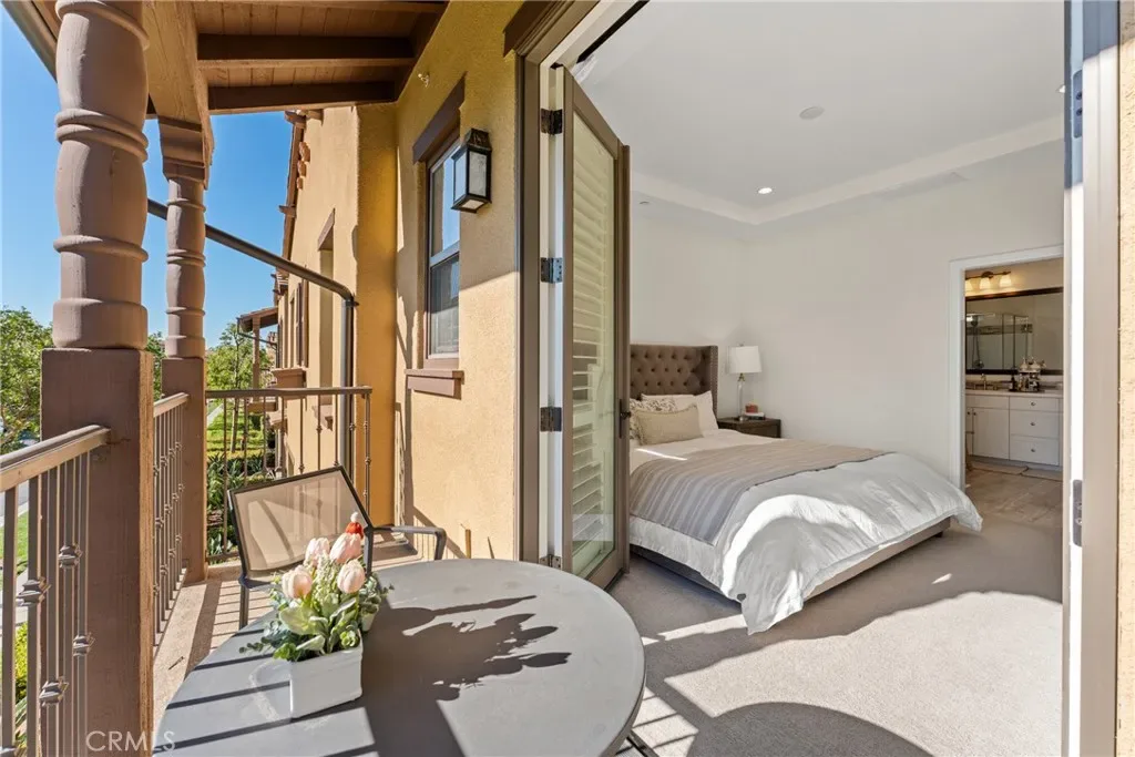 (Major $100,000 price reduction! Exceptional opportunity-seller is highly motivated and ready to make a deal.)Welcome to this absolutely stunning and rarely available Entrata Plan 2 condominium in the prestigious Orchard Hills community of Irvine. Perfectly situated along the picturesque greenbelt, this beautifully maintained 2-bedroom, 2.5-bath residence with a tech loft offers a unique and highly desirable layout with no neighbors above or below, providing exceptional privacy and comfort. As you step inside, you are greeted by a bright and inviting open-concept great room featuring elegant wood-like tile flooring and plantation shutters, creating a warm and sophisticated atmosphere. The thoughtfully designed kitchen is the heart of the home, complete with a spacious center island, upgraded quartz countertops, abundant cabinetry, custom decorative backsplash, and premium stainless-steel appliances, all highlighted by two stylish pendant lights. Step outside to the private outdoor atrium, a peaceful retreat perfect for weekend BBQs, morning coffee, or intimate evening gatherings under the California sky. Upstairs, you’ll find a generous tech loft, ideal for a home office or study area, along with two spacious en-suite bedrooms and a conveniently located individual laundry closet. The luxurious primary suite offers French doors that open to a large private balcony, where you can enjoy breathtaking mountain and greenbelt views. The spa-inspired primary bathroom features dual vanities, a soaking tub, a separate shower, and a large walk-in closet. Additional highlights include an oversized 2.5-car garage, offering incredible flexibility for a home gym, workshop, or additional storage. Residents enjoy access to resort-style community amenities, including two pools, a clubhouse, playground, and sports courts, all within the highly acclaimed Irvine Unified School District, serving Canyon View Elementary and Northwood High School. As you walk through this home, you’ll quickly notice the many thoughtful details and meticulous care throughout, reflecting the homeowner’s dedication to creating a warm, welcoming, and well-loved living space.