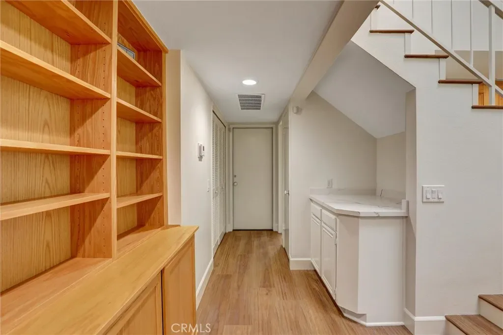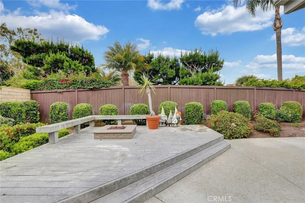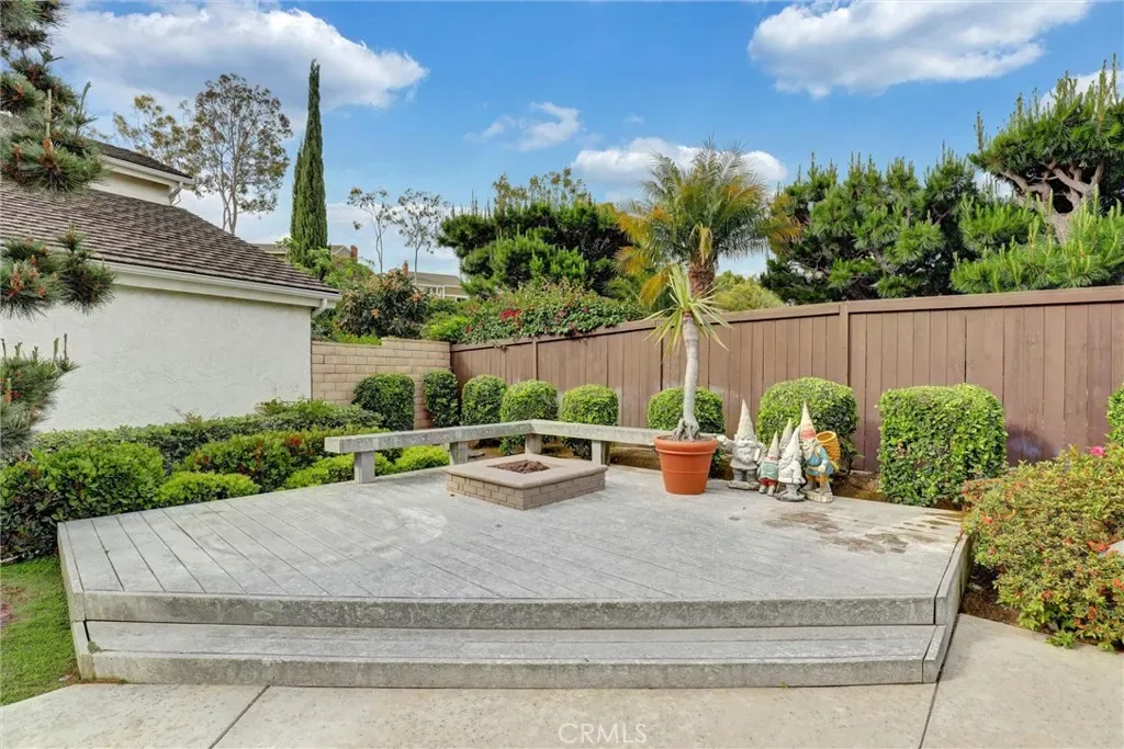 Large family room, living room, dining room and conversation pit. It also has a downstairs guest powder room with new fixtures and quartz countertop. It also has a dry bar with a quartz countertop and cabinets. The huge backyard has two decks with a fire pit and wraps around the house with entries from each room on the bottom floor. Spacious two-car garage with separate refrigerator, rafters, and shelving. The backyard has wooden decks with cover and beautiful landscape plants and flowers.