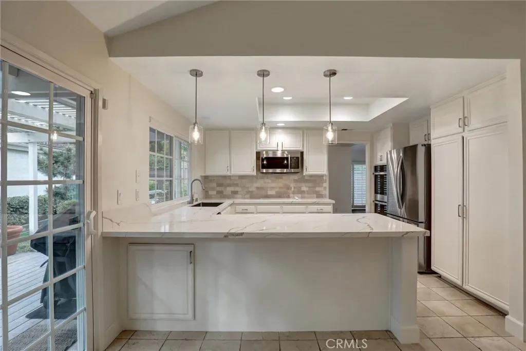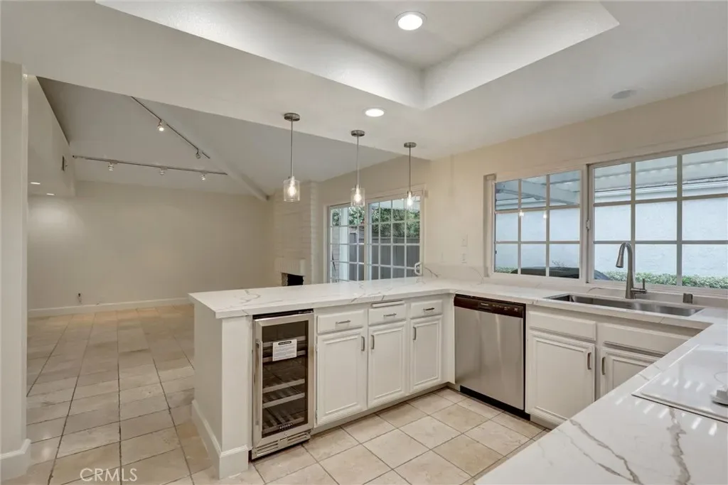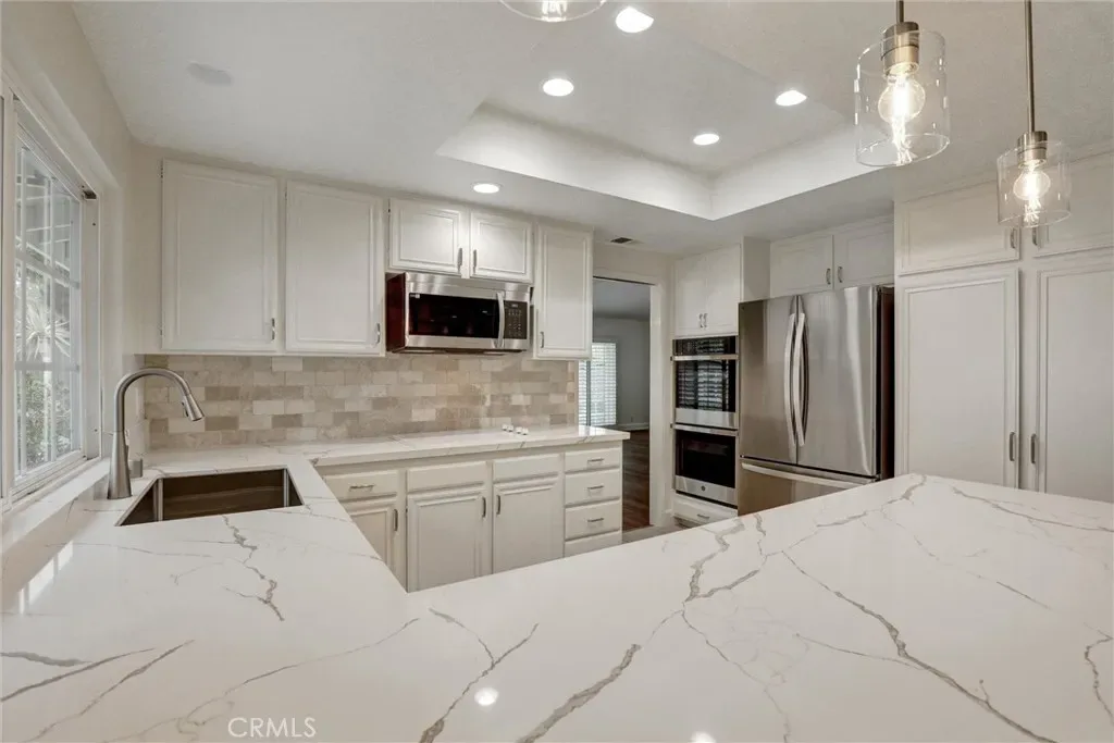 Spectacular single family 4 bedroom 2 ½ bathroom home in the coveted Turtle Rock Glen community of Irvine. Light and bright with spacious rooms and living areas. Newly remodeled with quartz countertops, new luxury vinyl floors, and new state of the art kitchen appliances that include new sink and faucet, dishwasher, refrigerator, double oven, microwave, stove top, a separate beverage cooler, air conditioning and a furnace. Neutral colors with abundant natural lighting from large windows and a skylight and newly painted with a soft white color. It contains two cozy brick fireplaces that showcases a two-way facing central fireplace open in both the living room and conversation pit areas. All new LED recessed lighting and drop-down pendant lighting with dimmer in the kitchen. The solid oak bookcase is a custom-made one-piece construction specifically designed and created for that space. The upscale wood shutters are installed throughout the house and slide to open in the living room and master areas. The windows are all double paned high quality environmental-proof glass windows and sliding doors. The floors include marble stone and new luxury vinyl rich brown durable flooring.